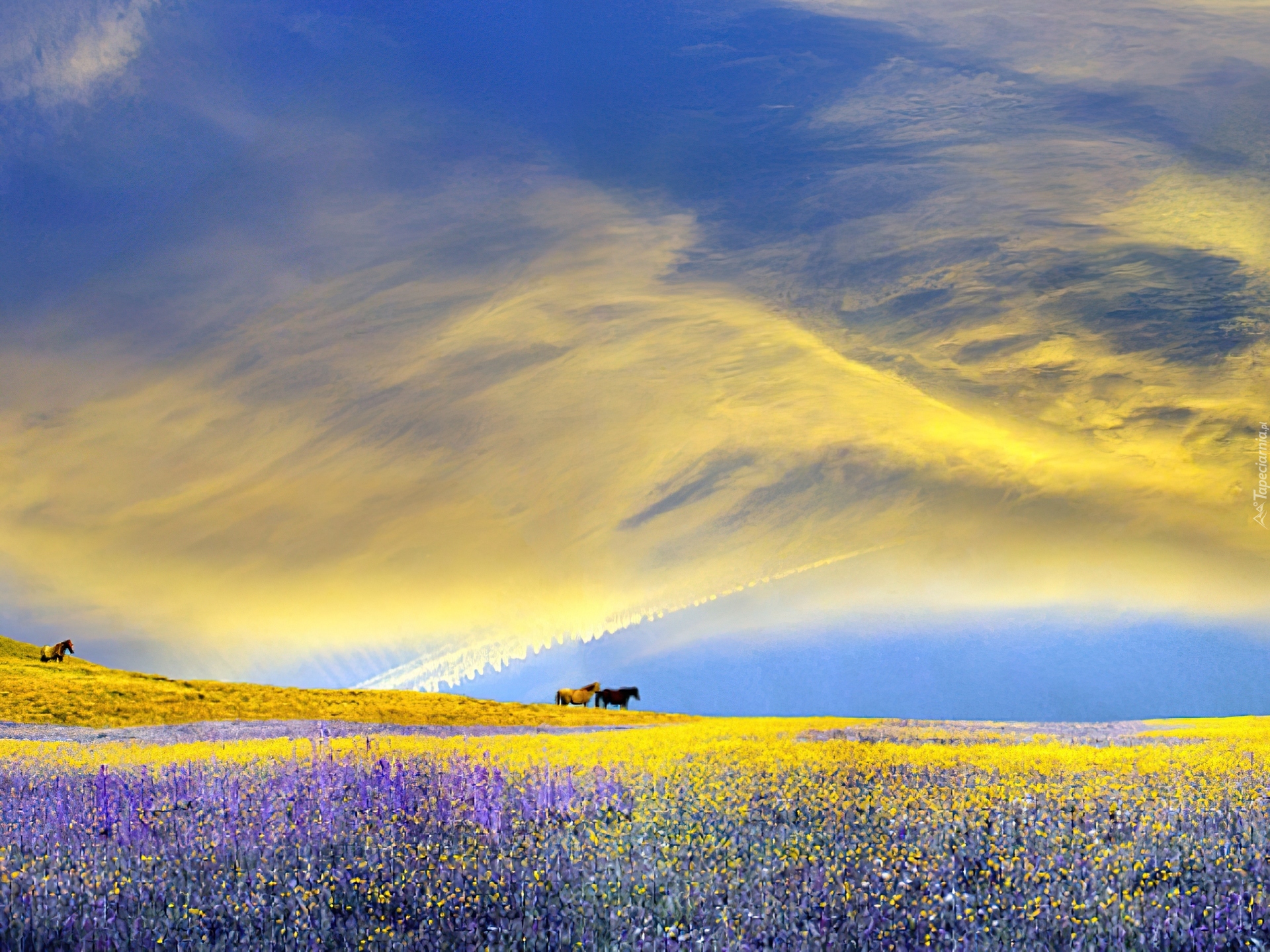 Edytor tapety: Lato, Kolorowa, Łąka, Konie