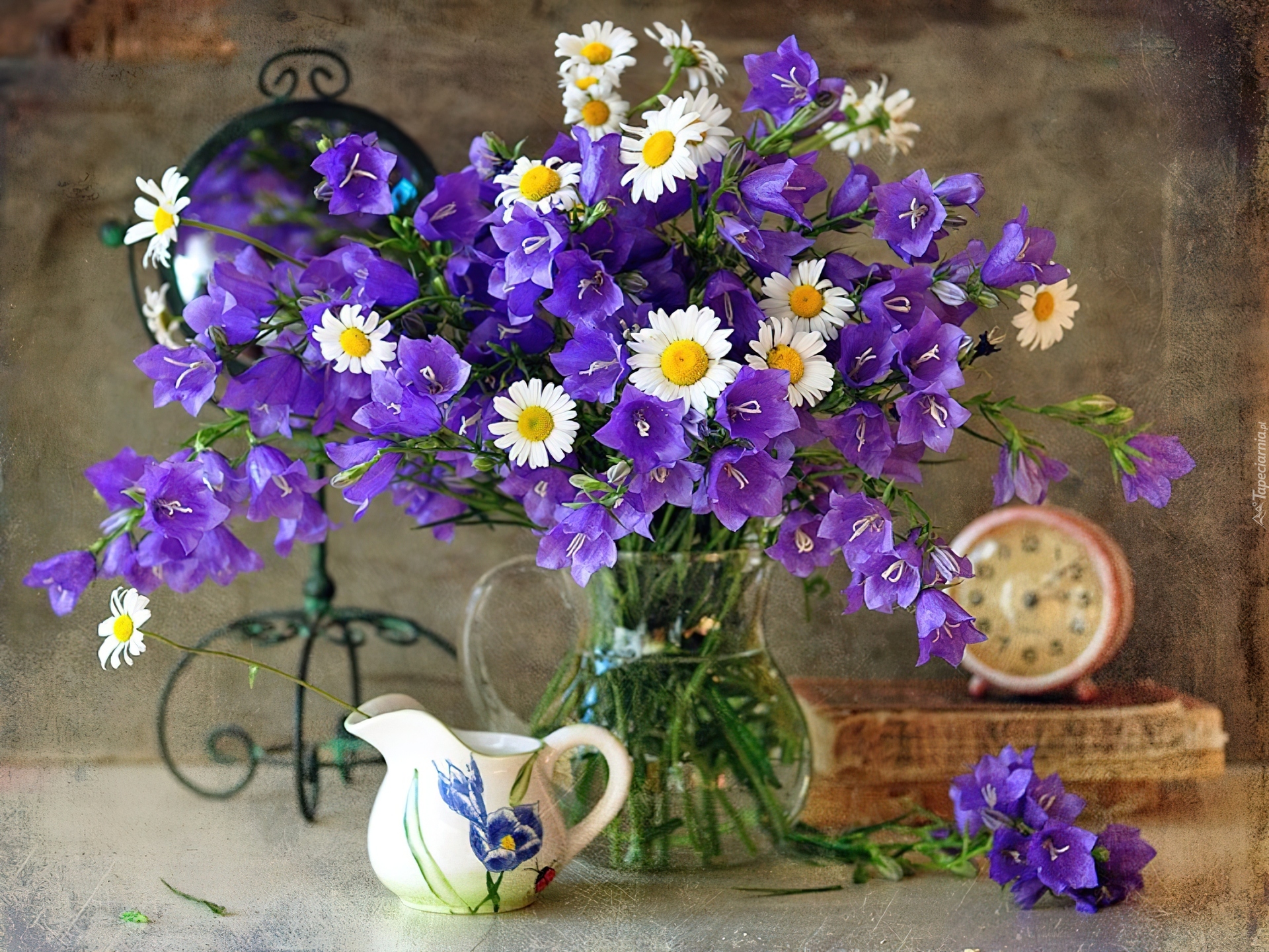 Edytor tapety: Kwiaty, Zegar, Dzbanek