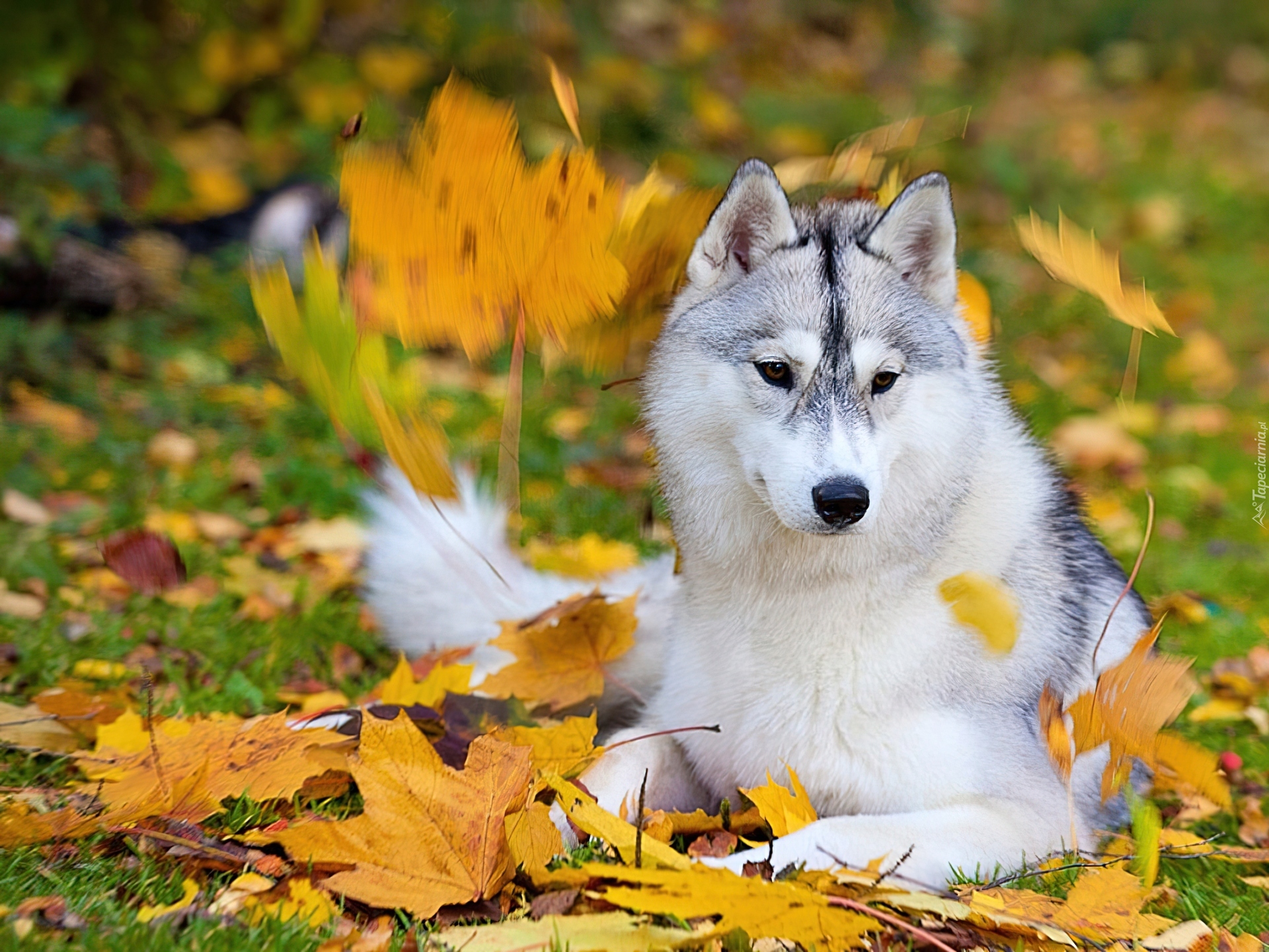 Edytor tapety: Pies, Husky, Jesień