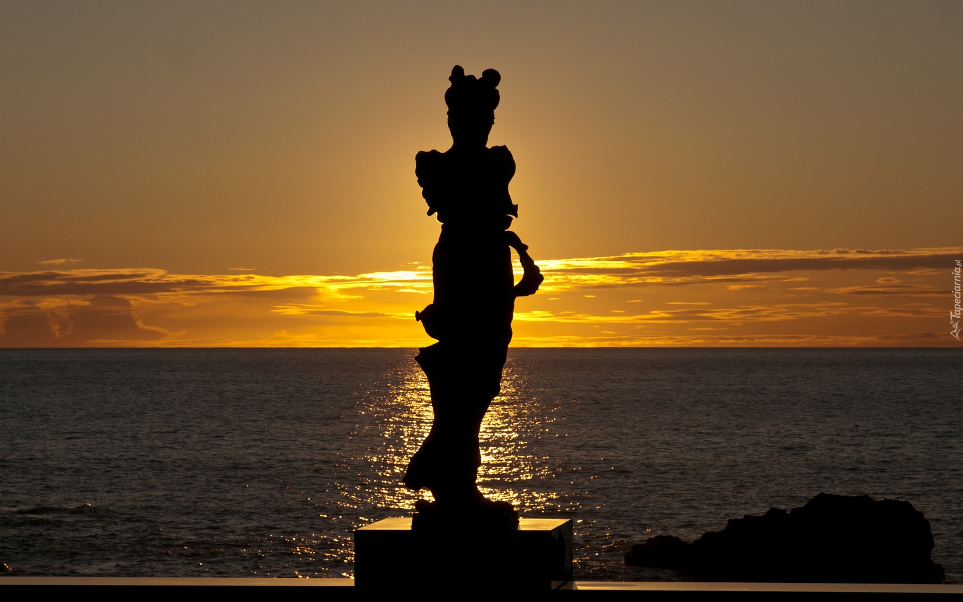 Edytor tapety: Morze, Zachód, Słońca, Kobieta, Posąg