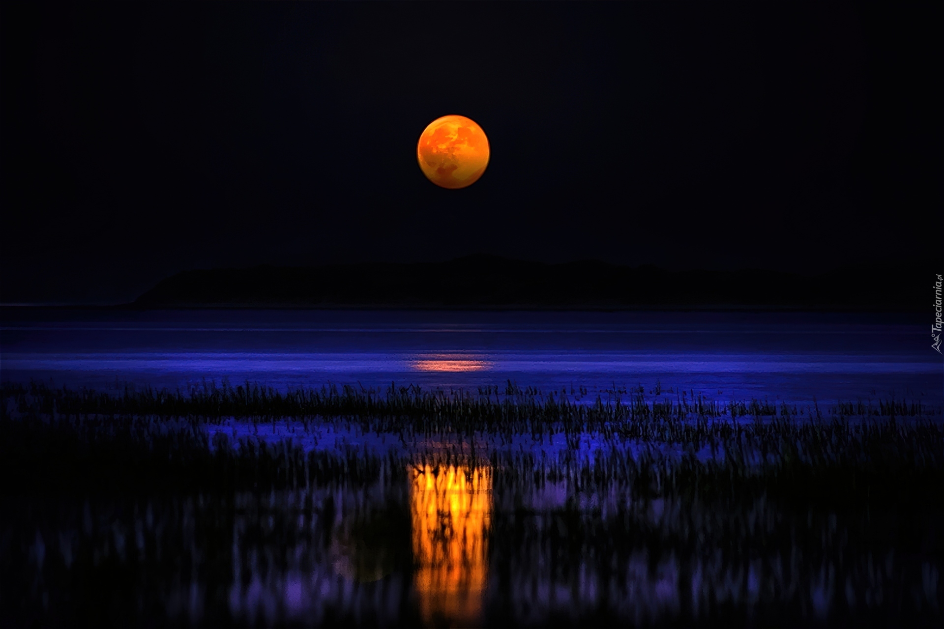 Edytor tapety: Noc, Jezioro, Księżyc