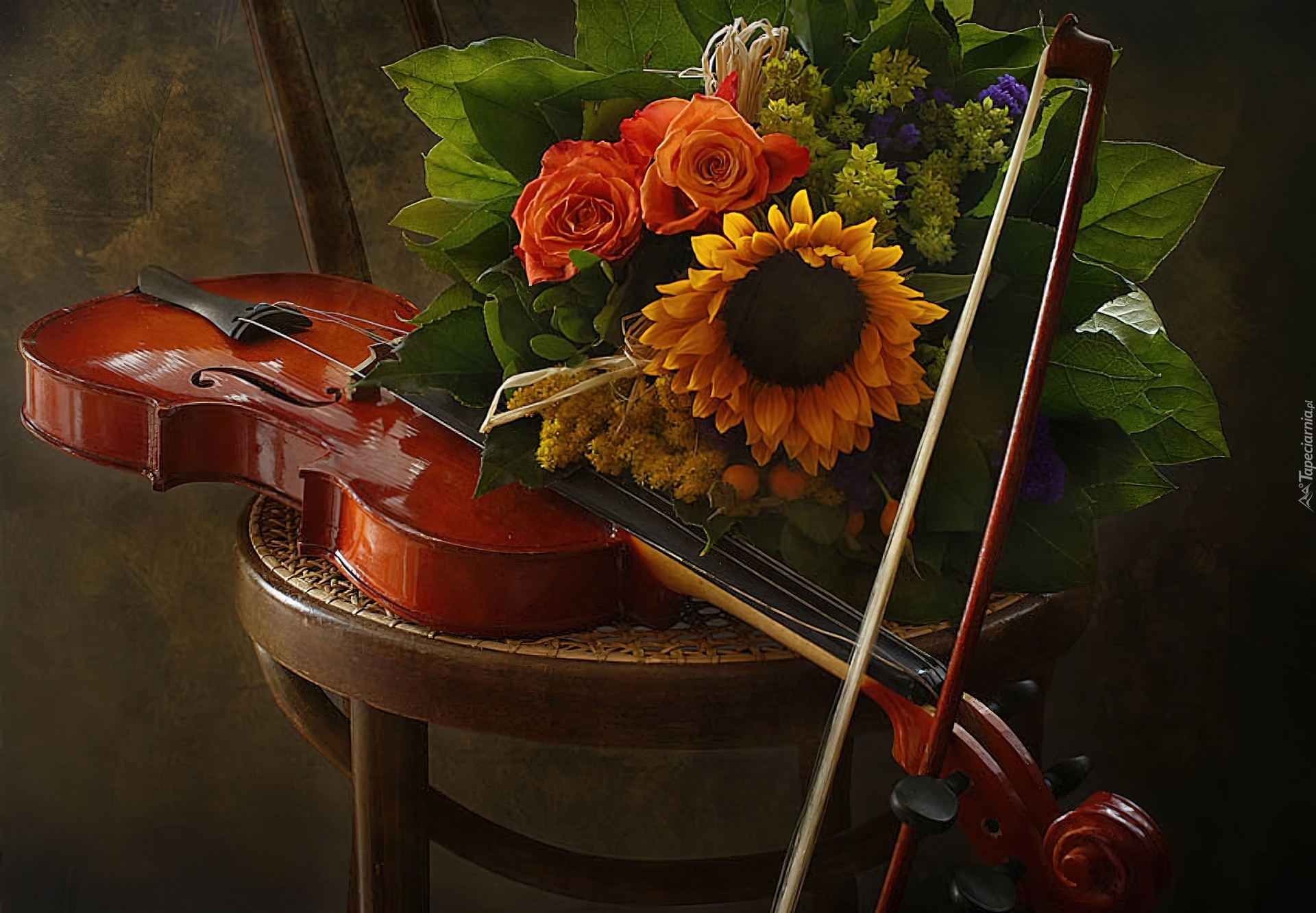 Edytor tapety: Skrzypce, Smyczek, Wiązanka, Kwiatów