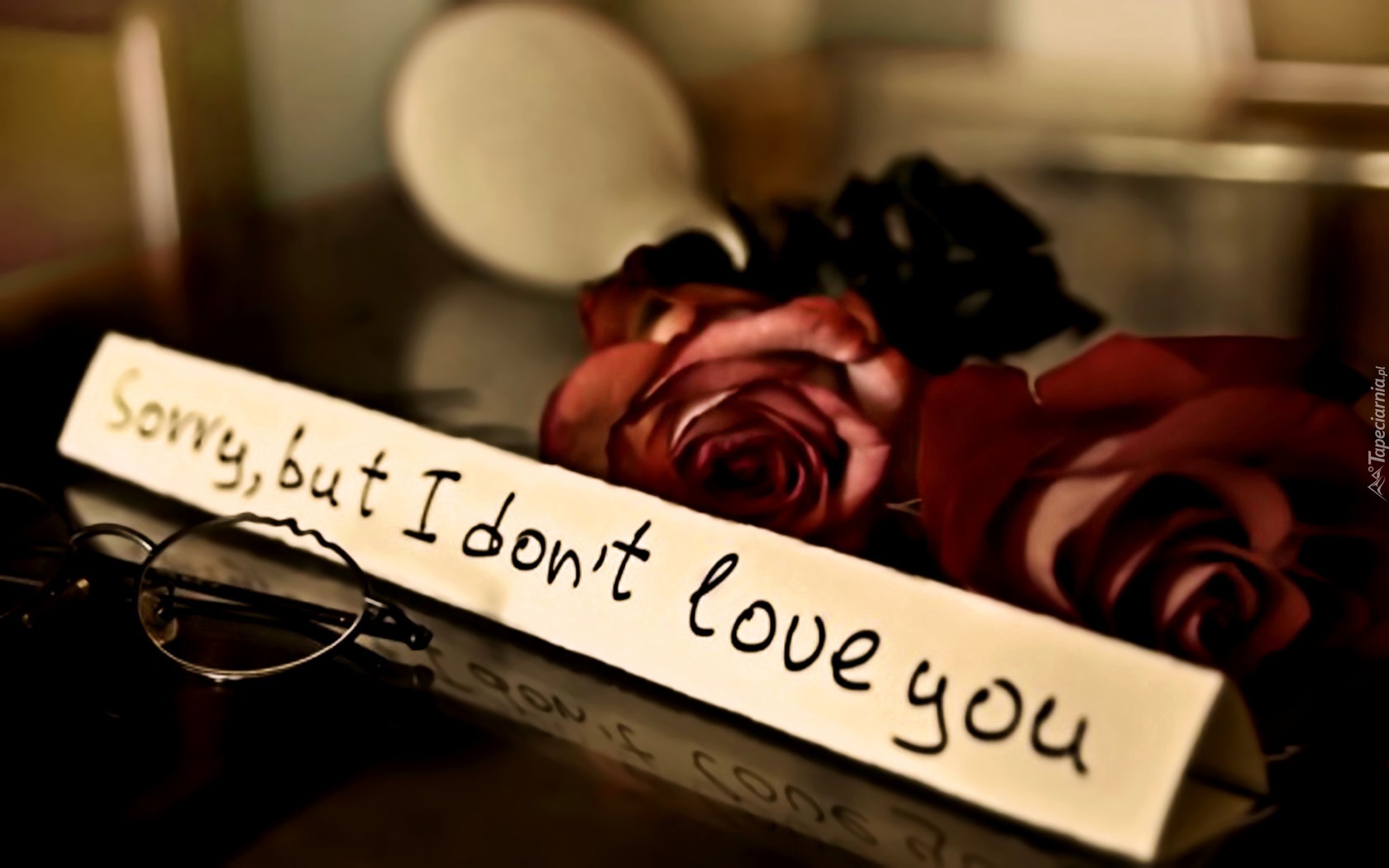 Edytor tapety: Róże, Napis, Okulary