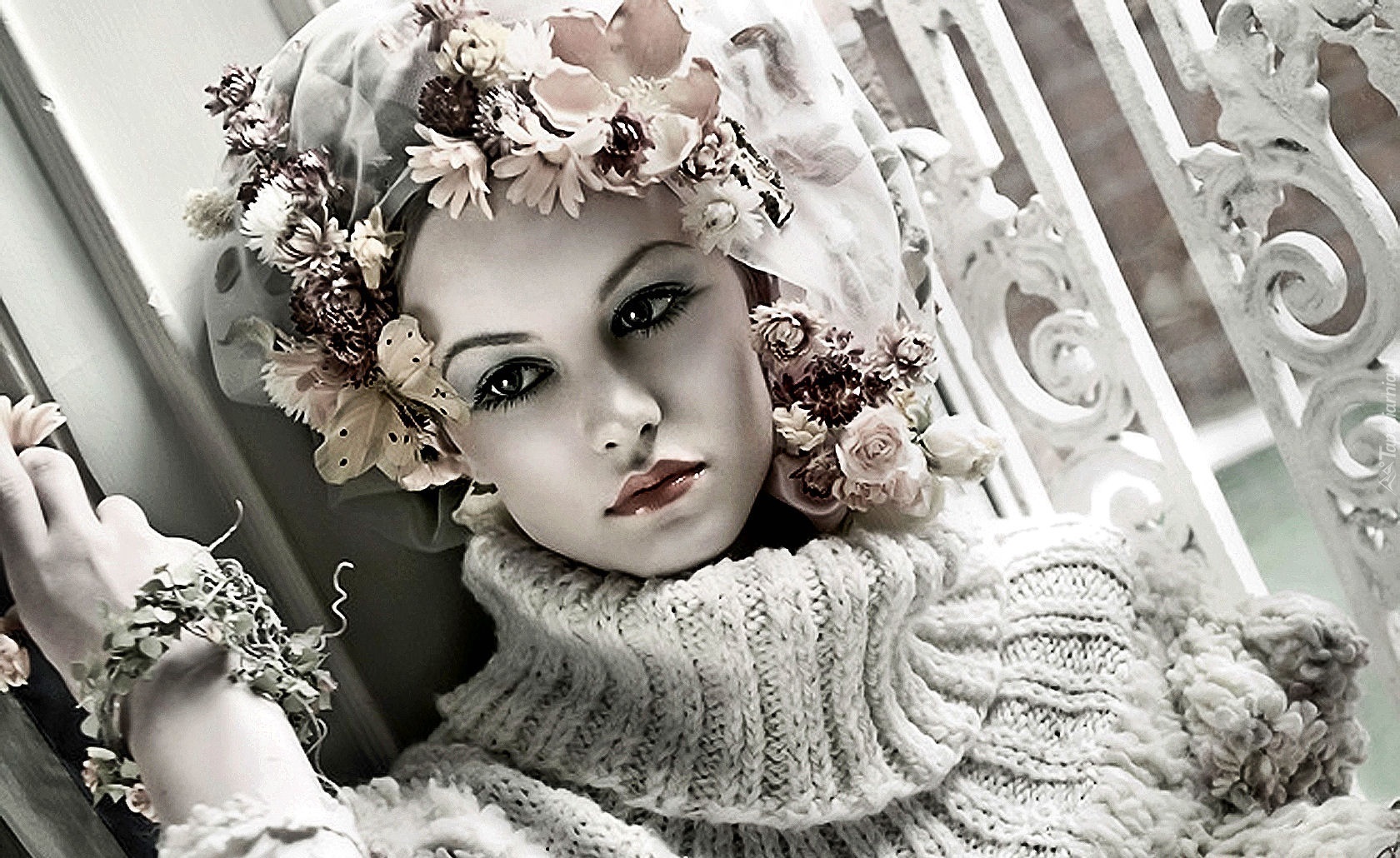 Edytor tapety: Kobieta, Makijaż, Golf, Kwiatki