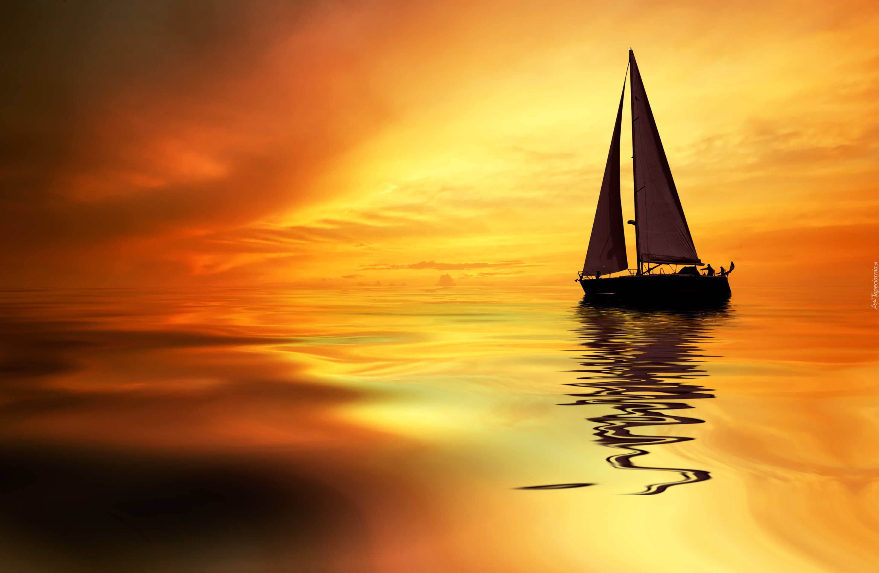 Edytor tapety: Zachód, Słońca, Tafla, Wody, Jacht