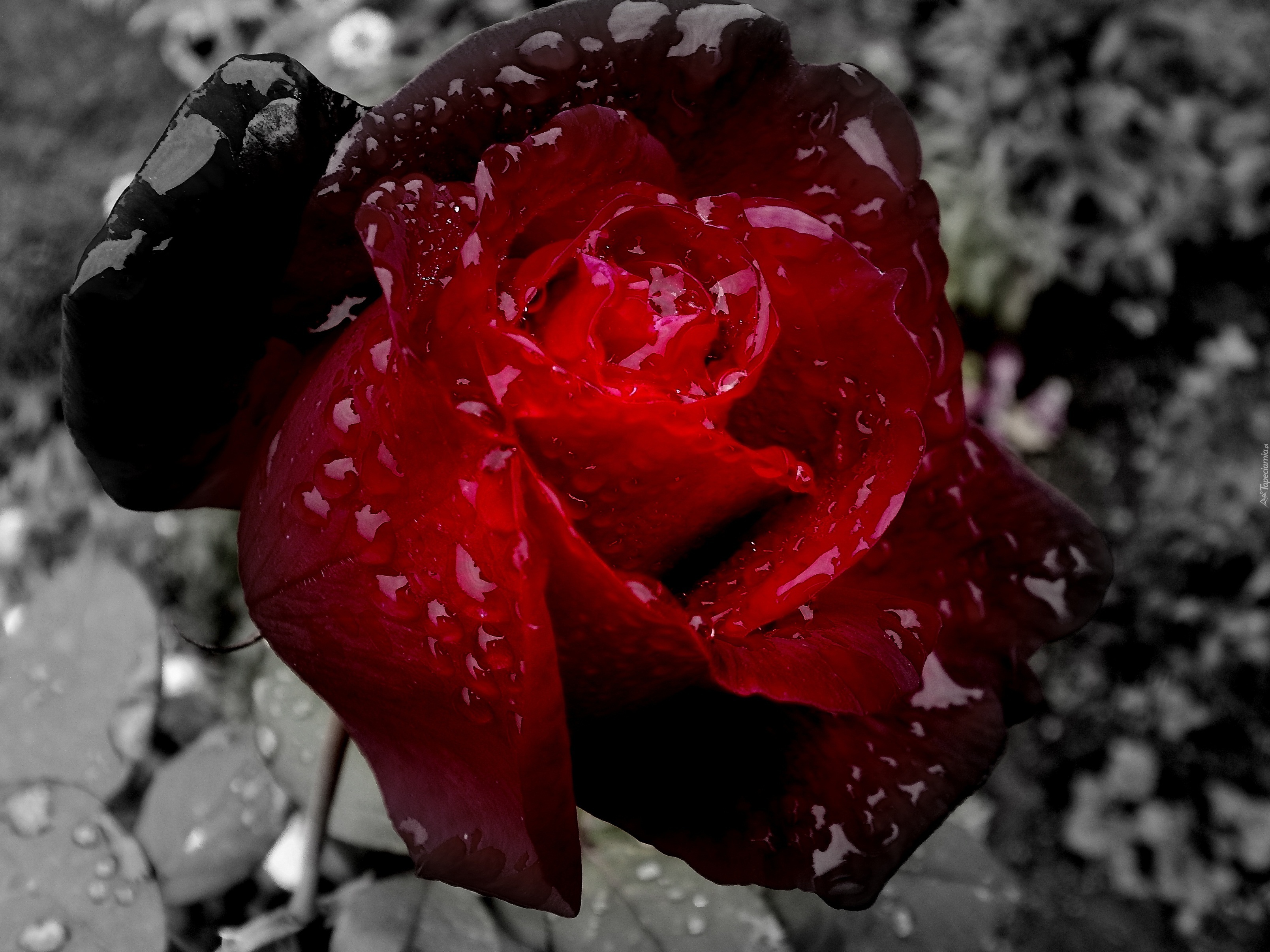 Edytor tapety: Czerwona, Róża, Krople, Wody