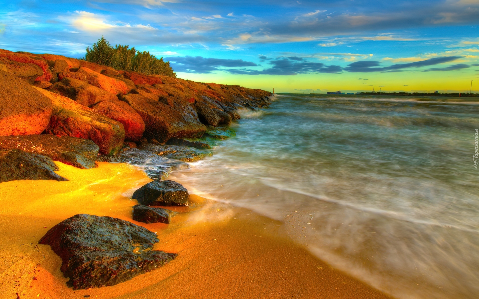 Edytor tapety: Morze, Plaża, Głazy