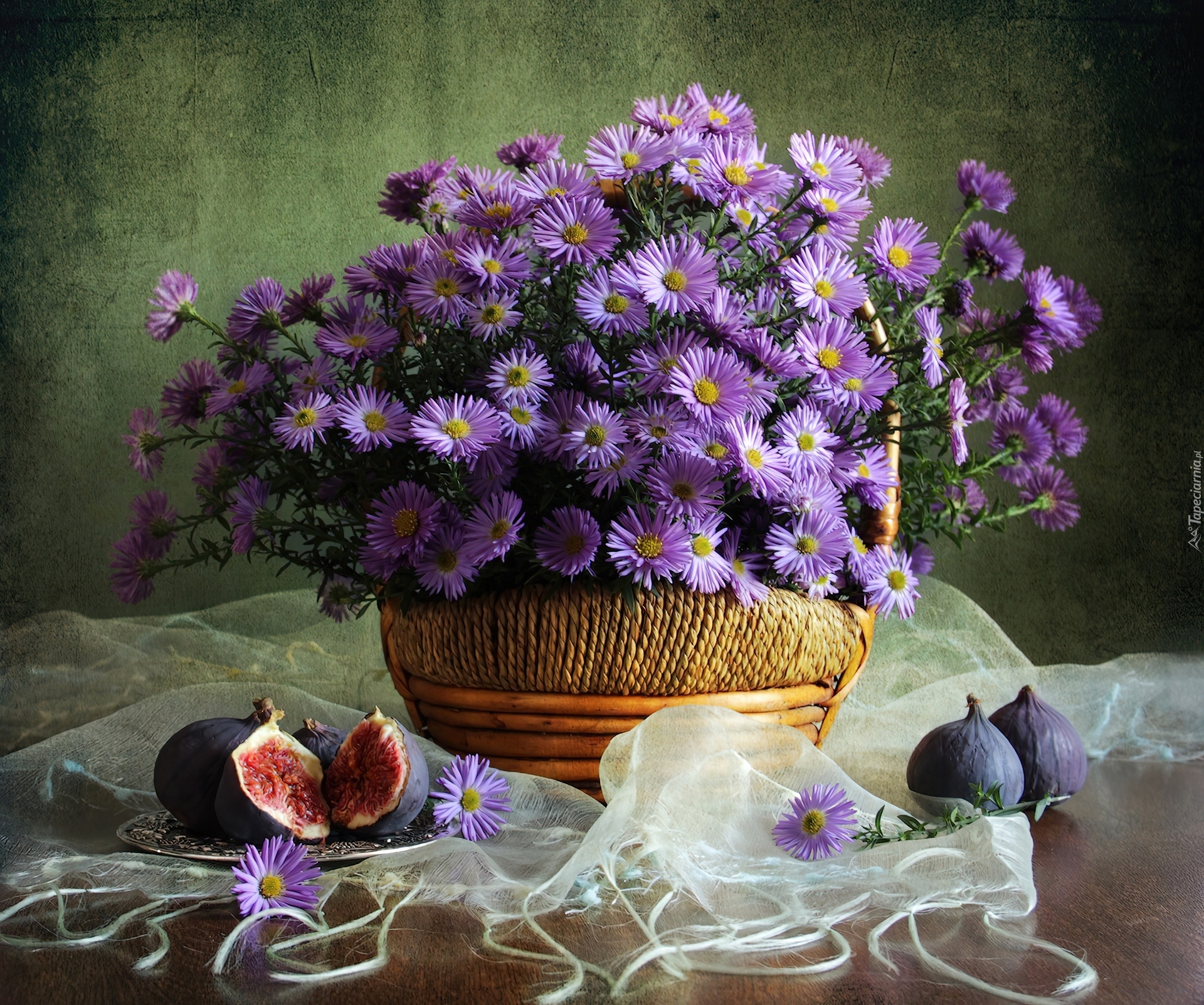 Edytor tapety: Fioletowe, Kwiaty, Astry, Koszyk