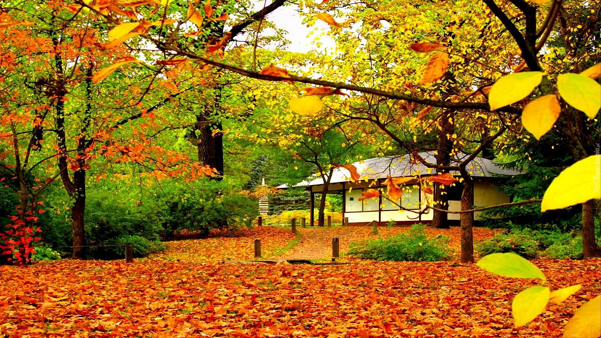 Edytor tapety: Park, Liście, Chatka