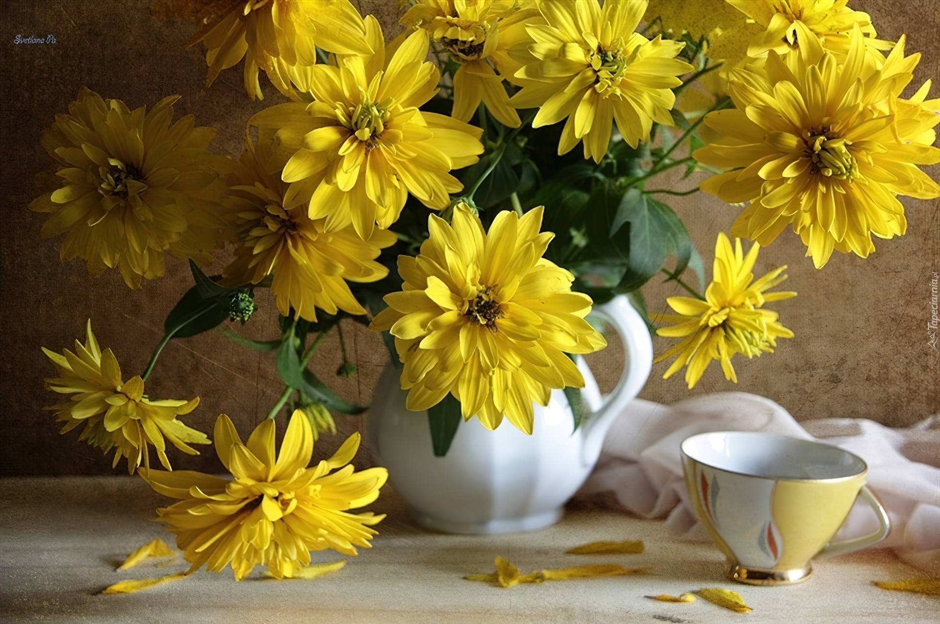 Edytor tapety: Żółte, Kwiaty, Wazon