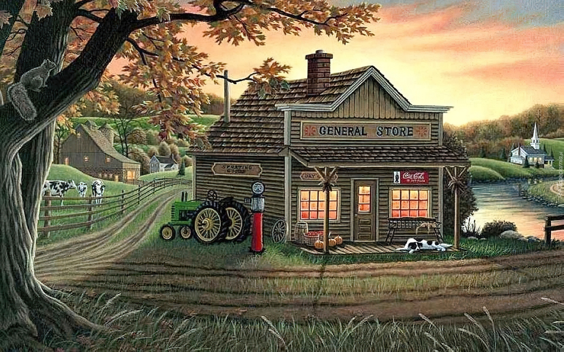 Edytor tapety: Dom, Traktor, Pies