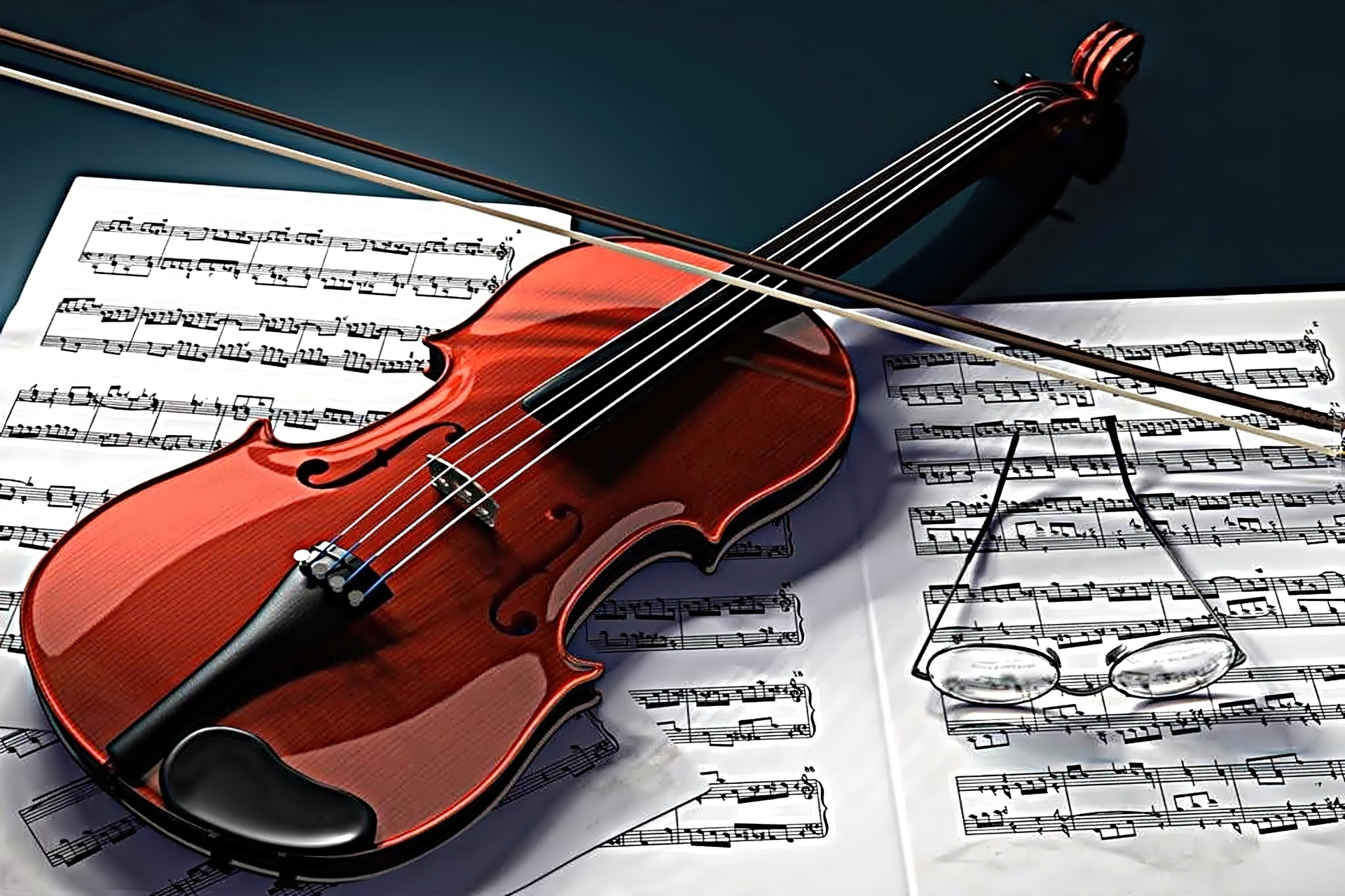 Edytor tapety: Skrzypce, Okulary, Nuty