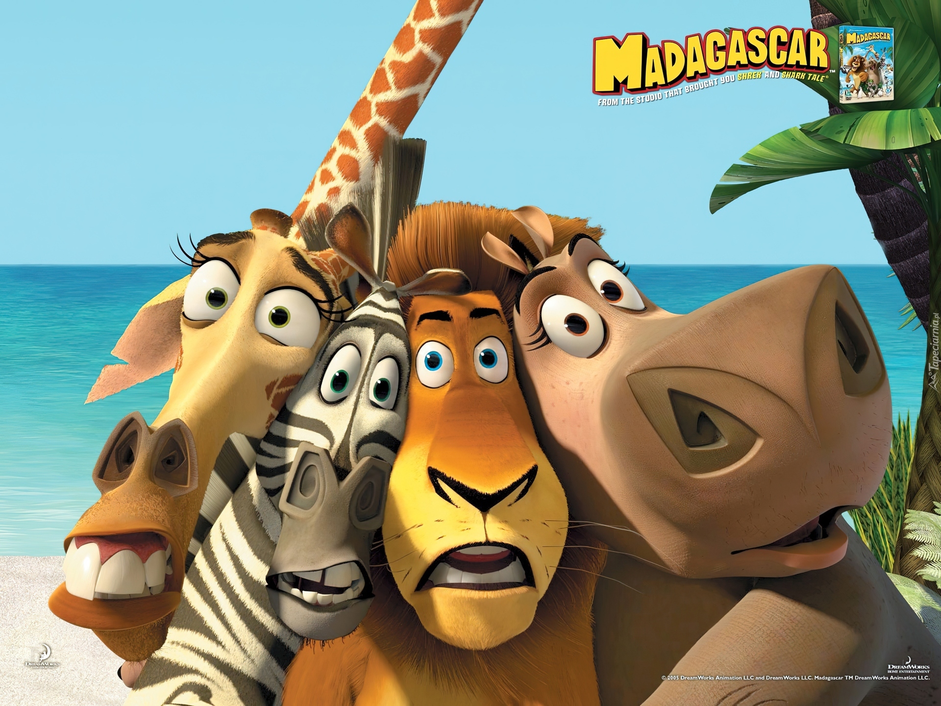Edytor tapety: Madagaskar, Żyrafa, Zebra, Lew, Hipopotan