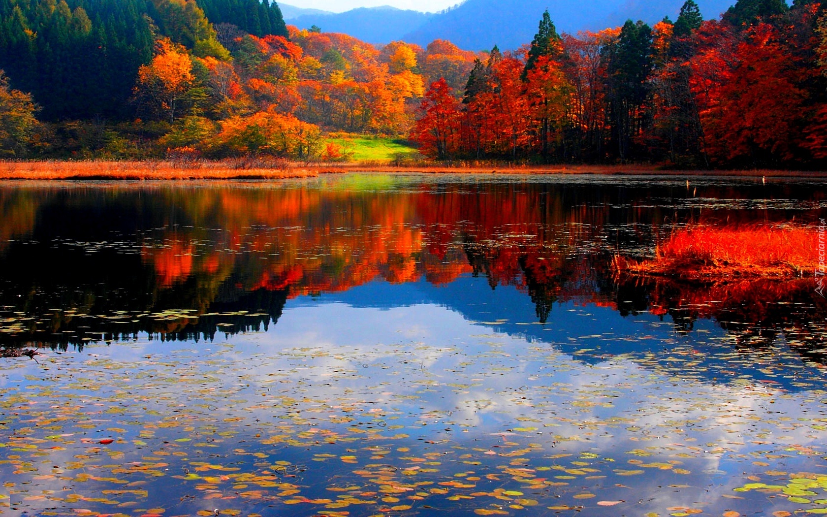 Edytor tapety: Kolorowe, Drzewa, Jezioro