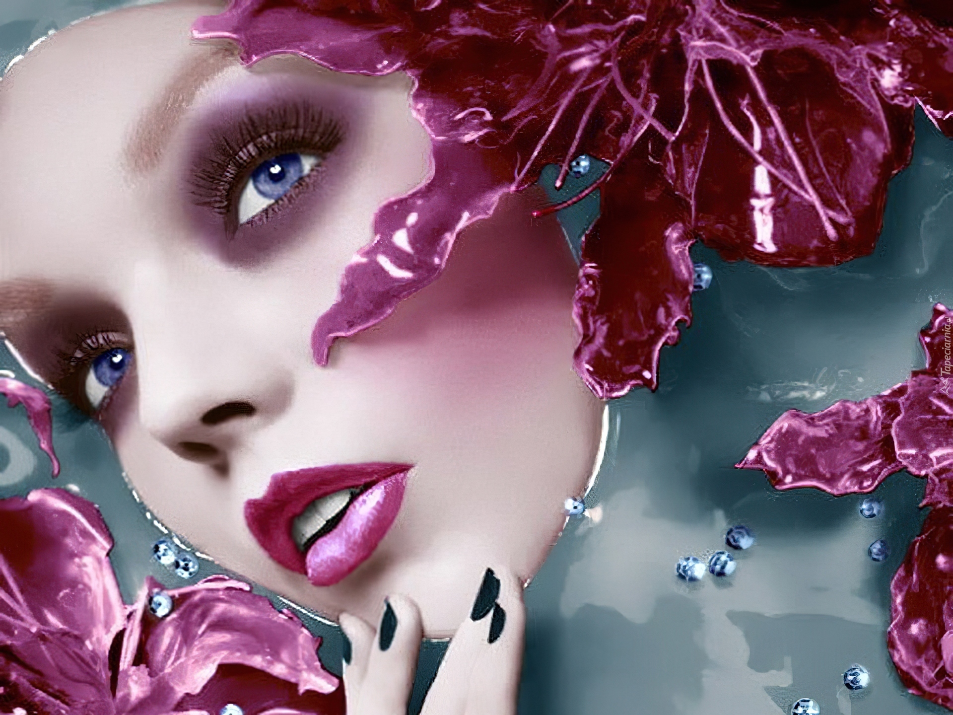 Edytor tapety: Kobieta, Makijaż, Kwiaty, Palce