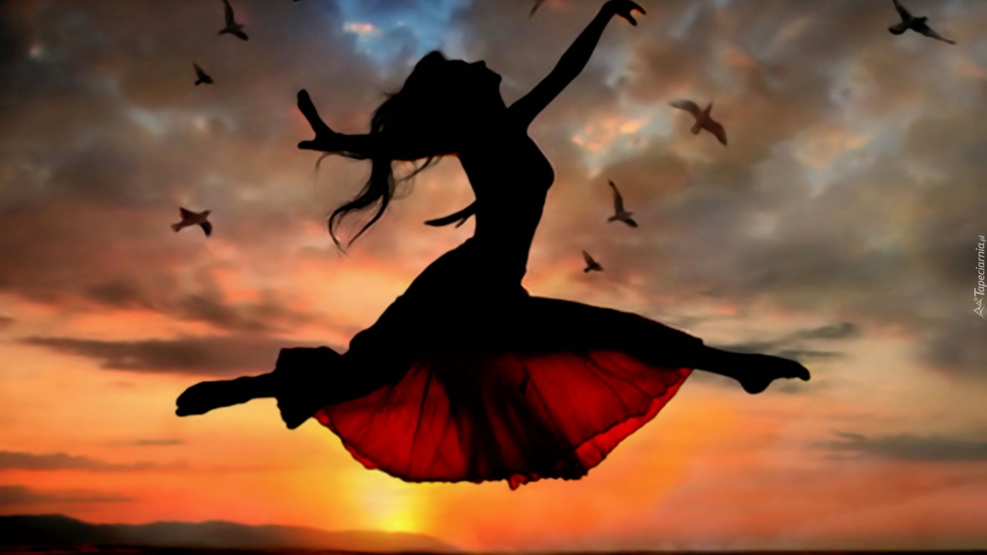 Edytor tapety: Kobieta, Zachód, Słońca, Ptaki