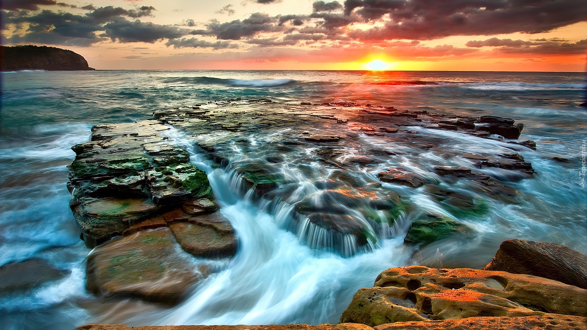 Edytor tapety: Zachód, Słońca, Morze, Skały