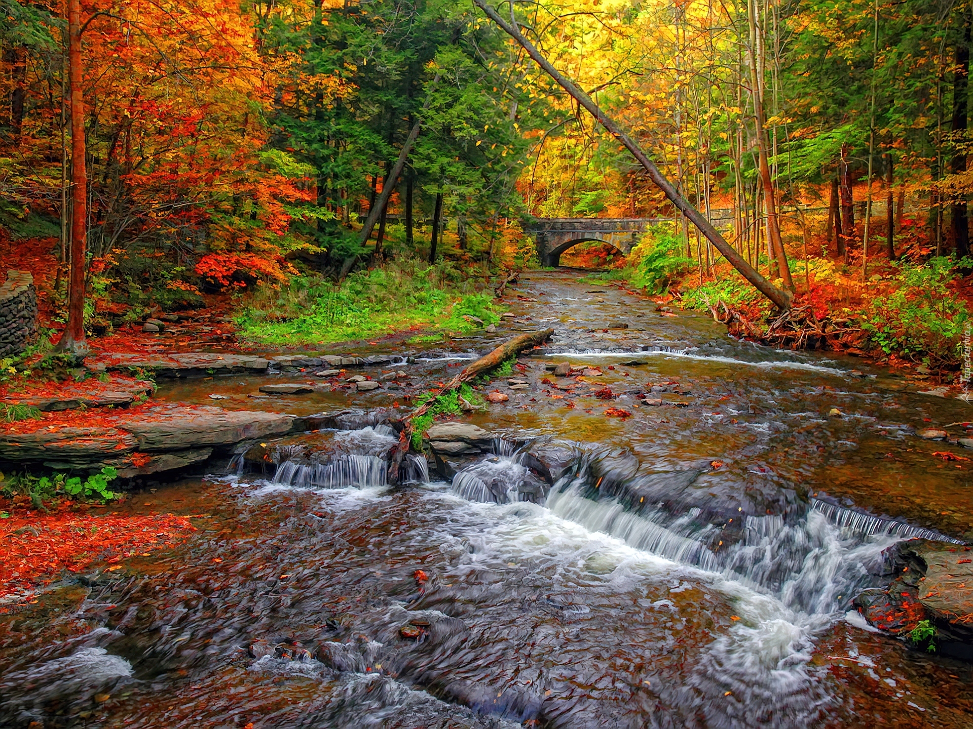 Edytor tapety: Jesień, Mostek, Rzeka