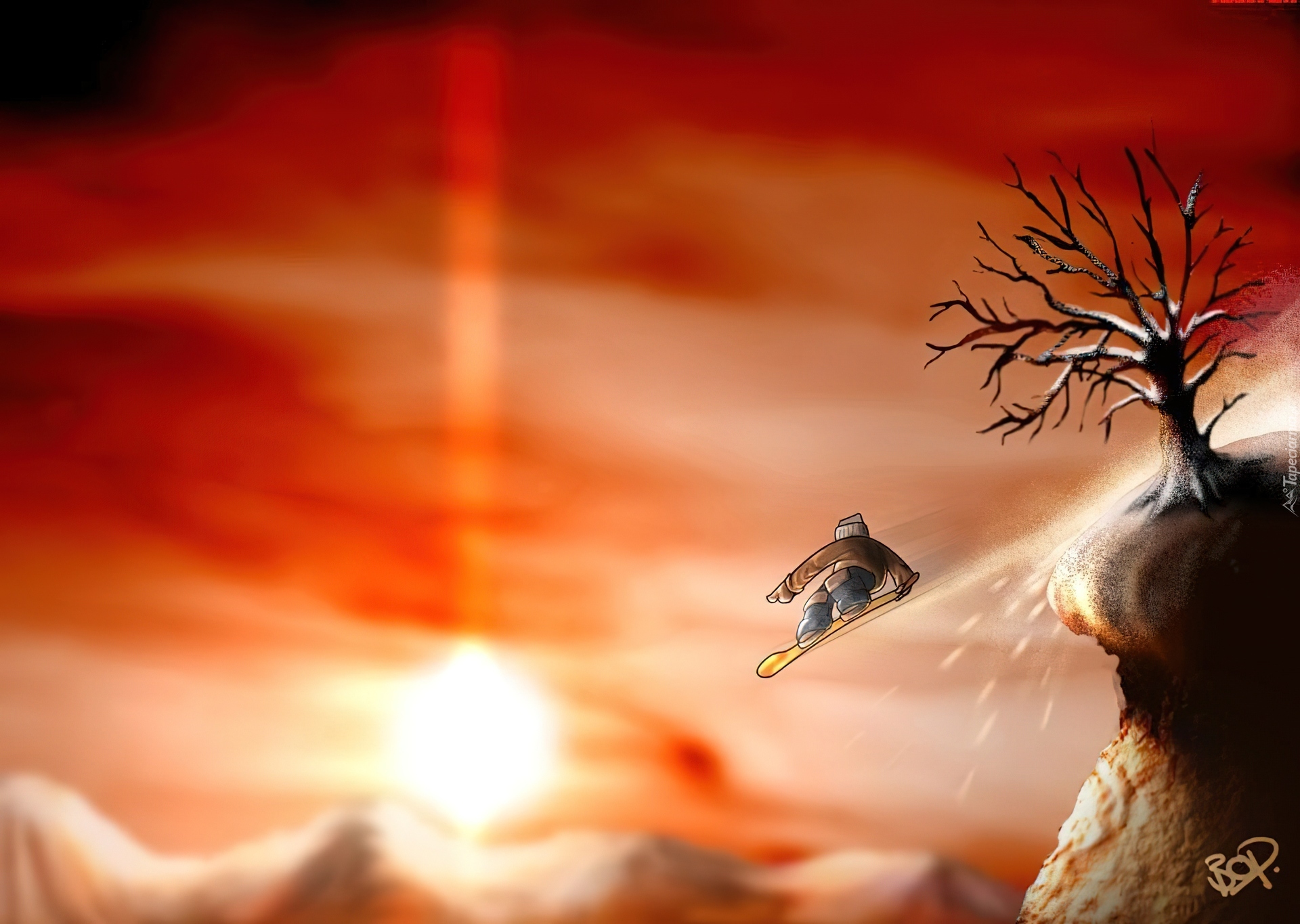 Edytor tapety: Słońce, Góry, Snowboard