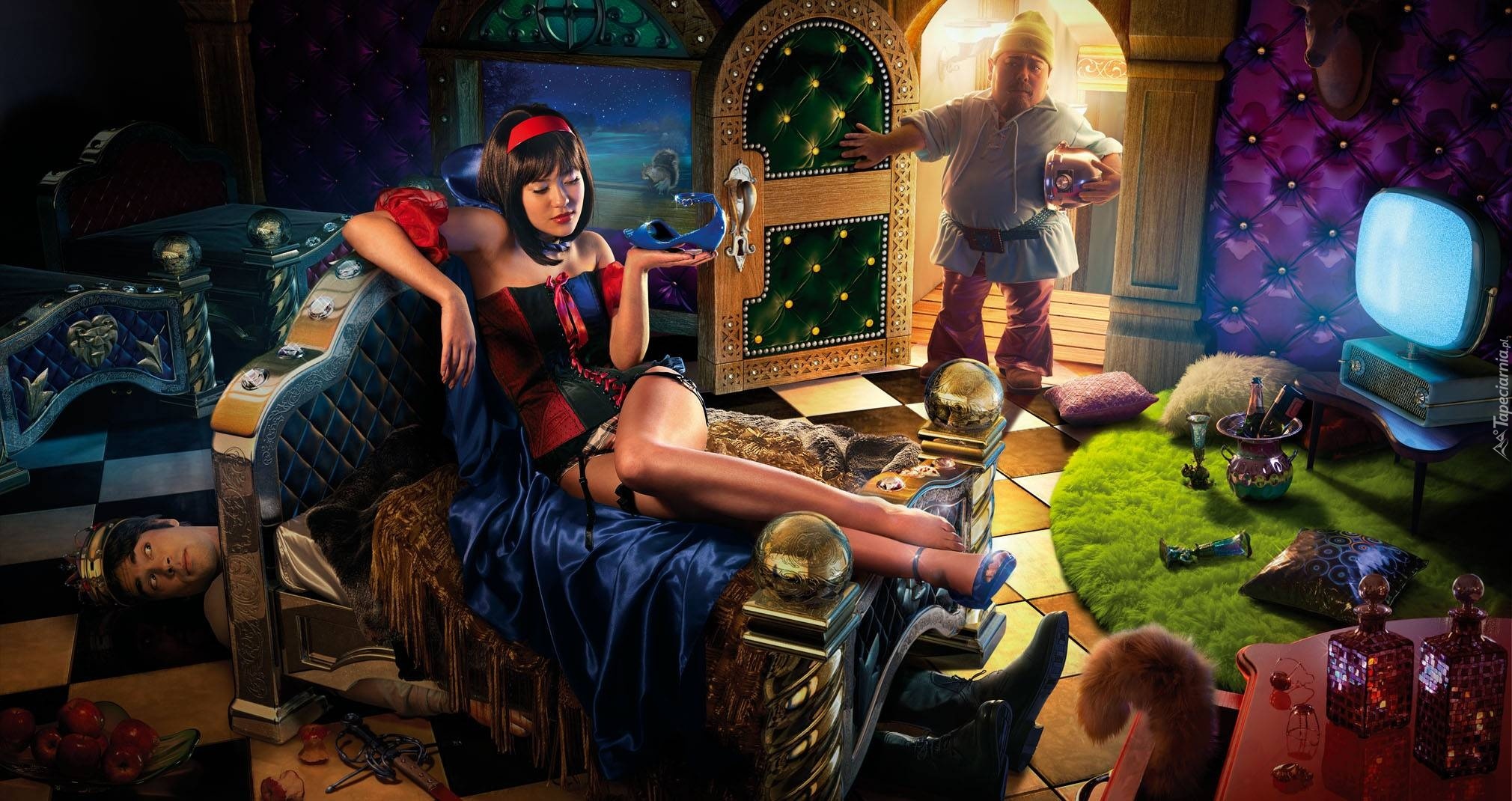 Edytor tapety: Karzeł, Kobieta, Książe, Pod, Łóżkiem