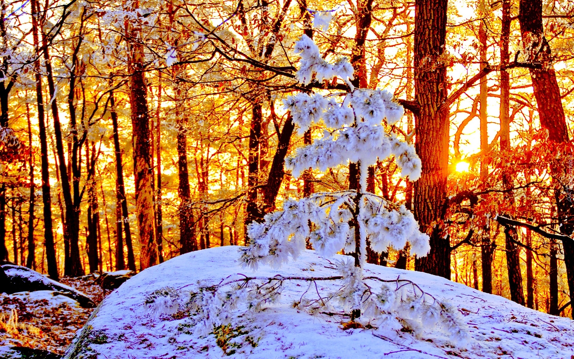 Edytor tapety: Zima, Las, Śnieg, Słońce