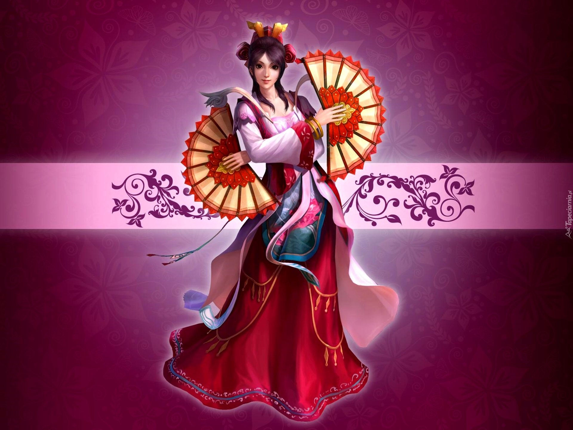 Edytor tapety: Kobieta, Suknia, Wachlarze