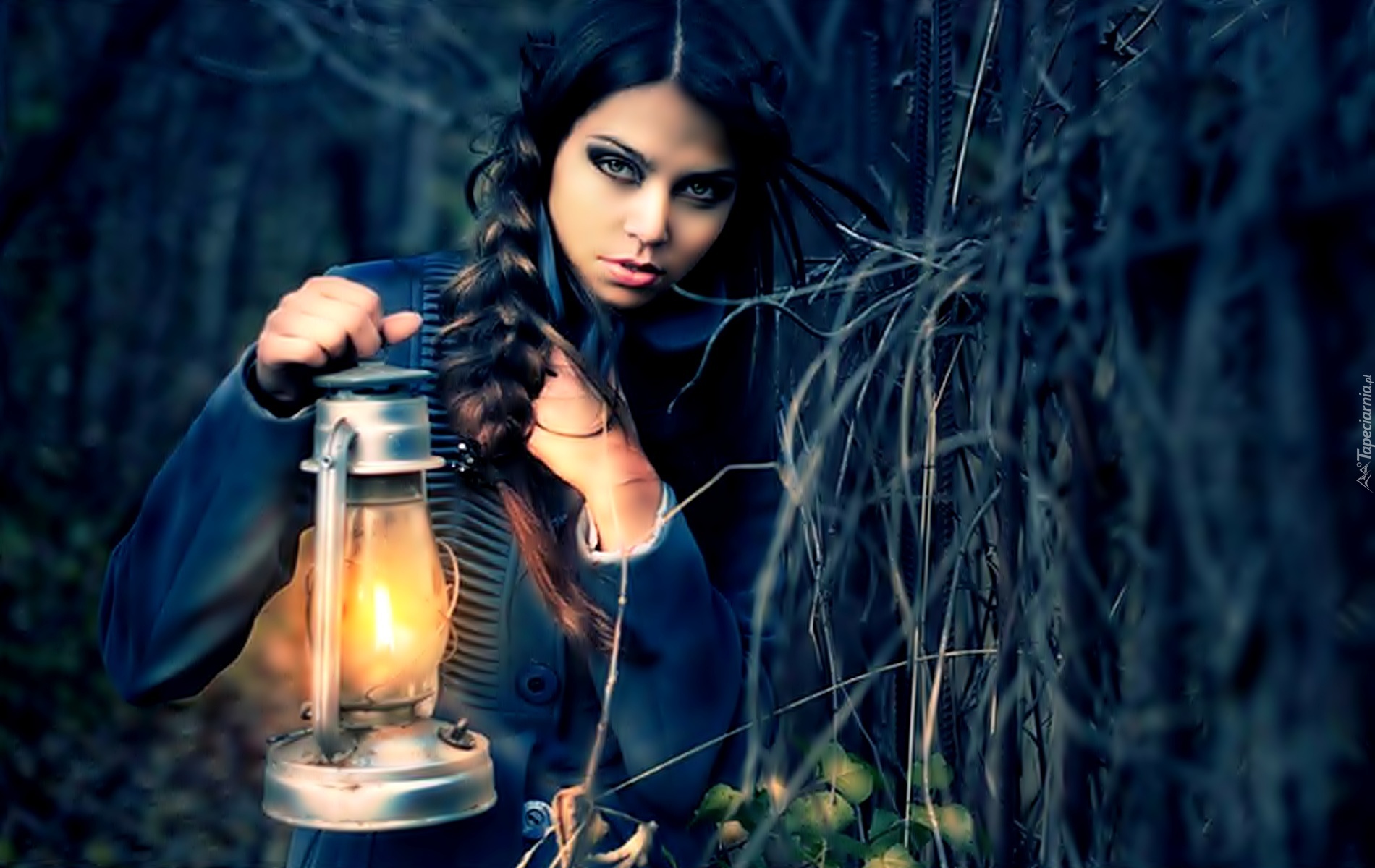 Edytor tapety: Kobieta, Lampa, Warkocze