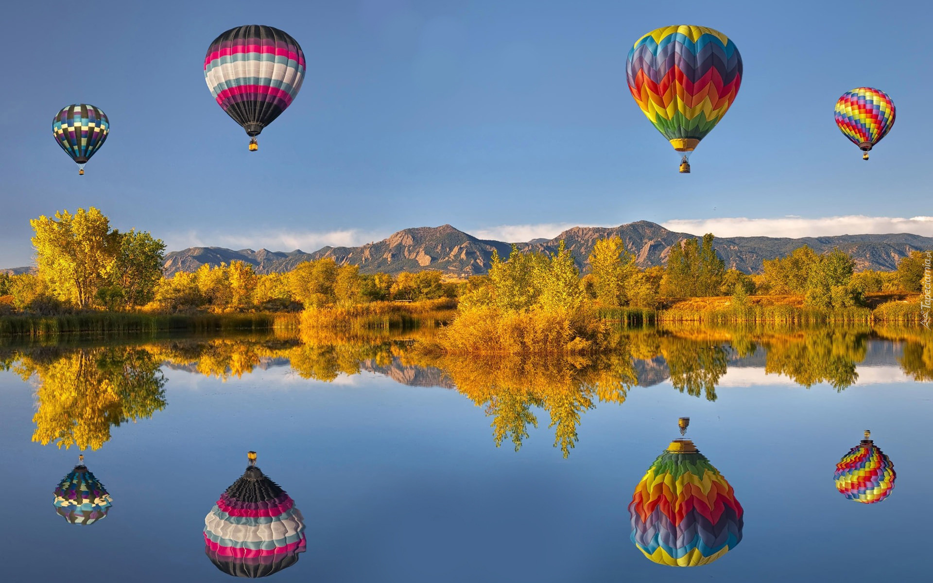 Edytor tapety: Jesień, Góry, Jezioro, Balony