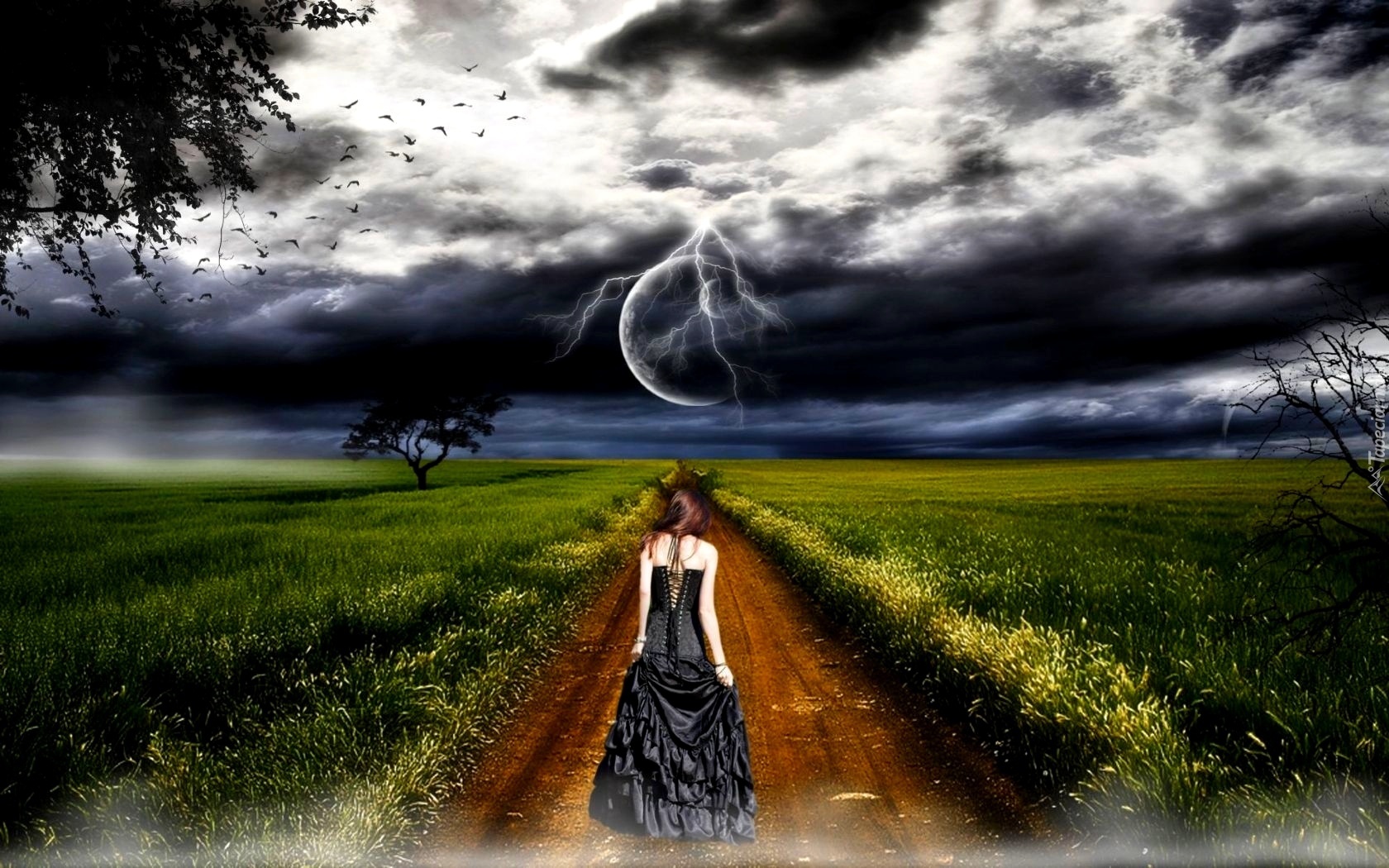Edytor tapety: Wiosna, Kobieta, Chmury, Droga