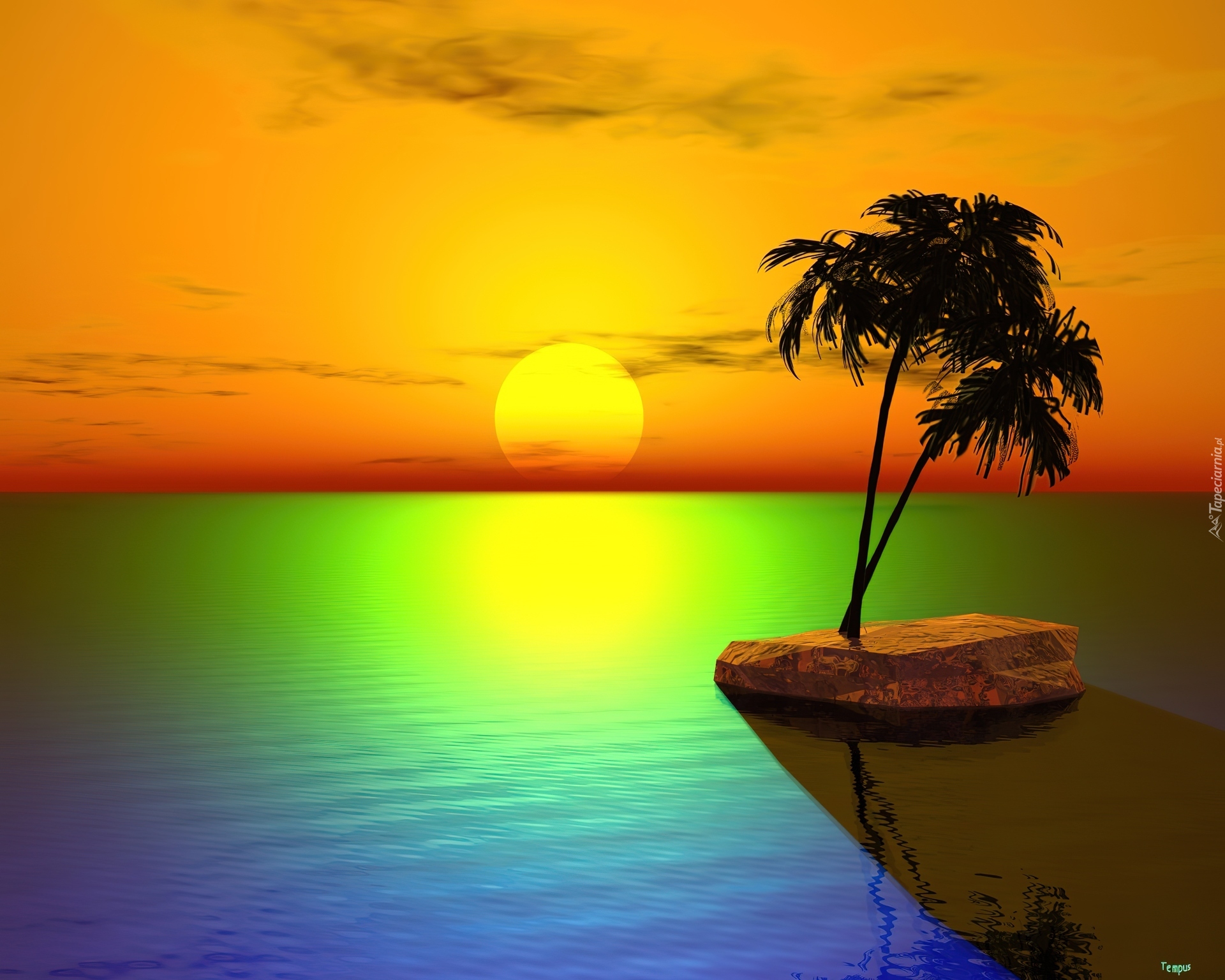 Edytor tapety: Morze, Wysepka, Palma