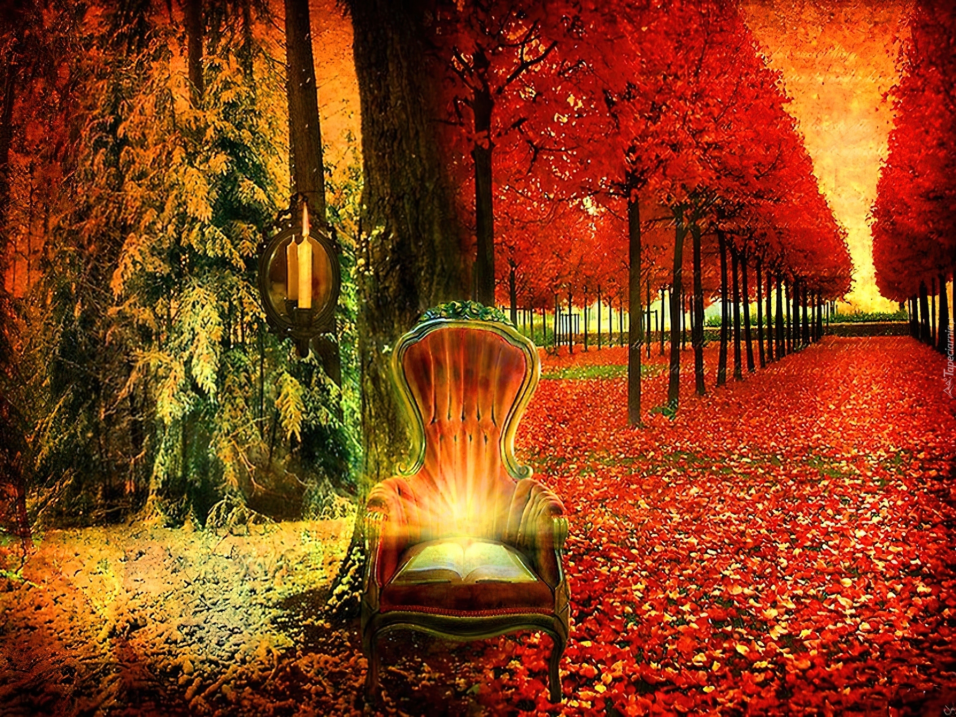 Edytor tapety: Jesień, Park, Krzesło