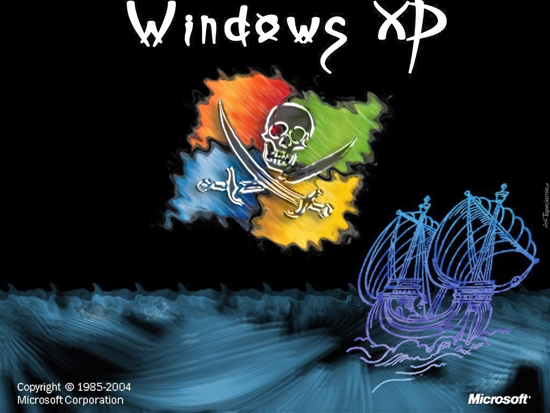 Edytor tapety: Windows XP, piraci, trupia czaszka