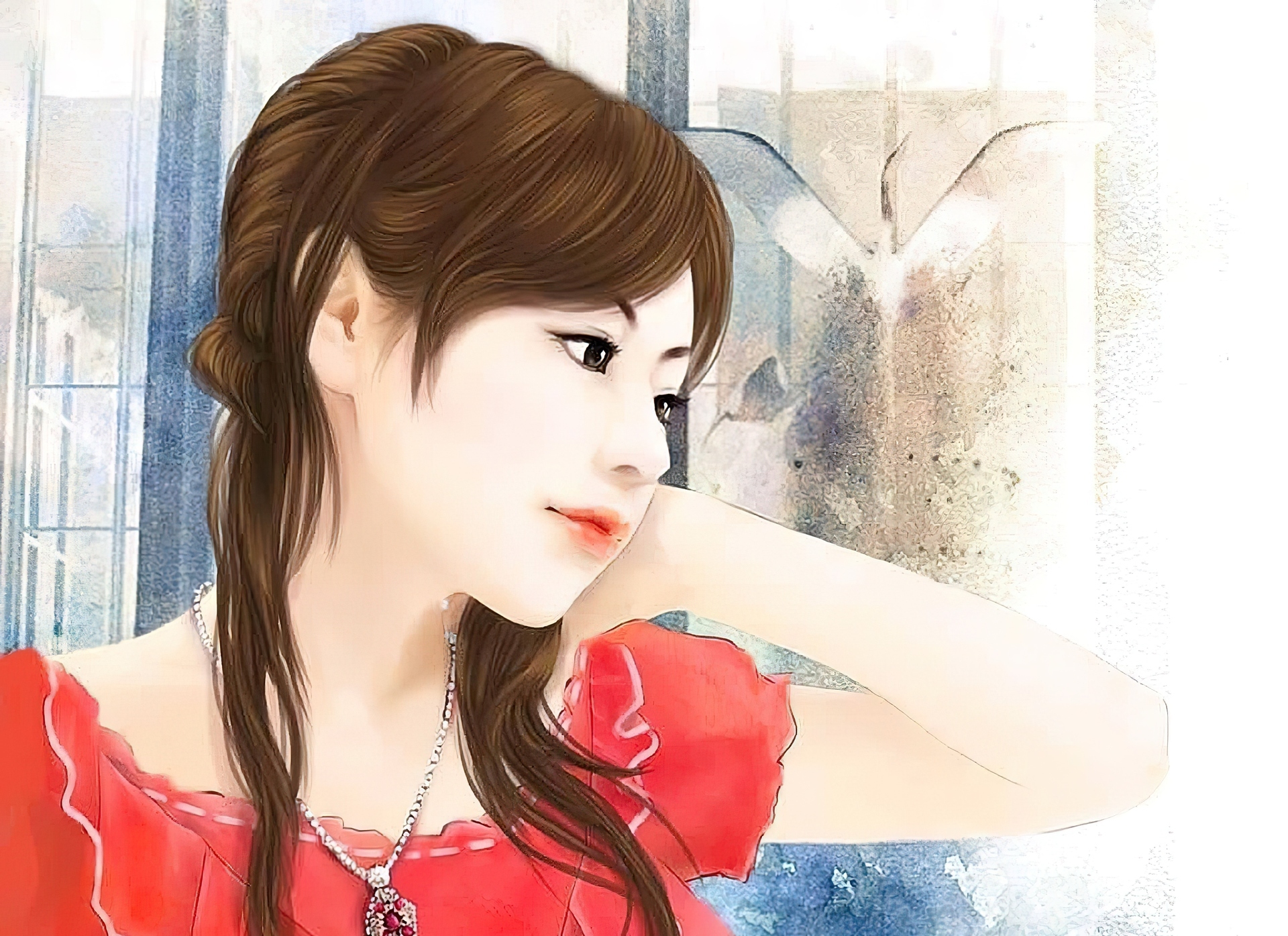 Edytor tapety: Młoda, Kobieta, Czerwona, Sukienka