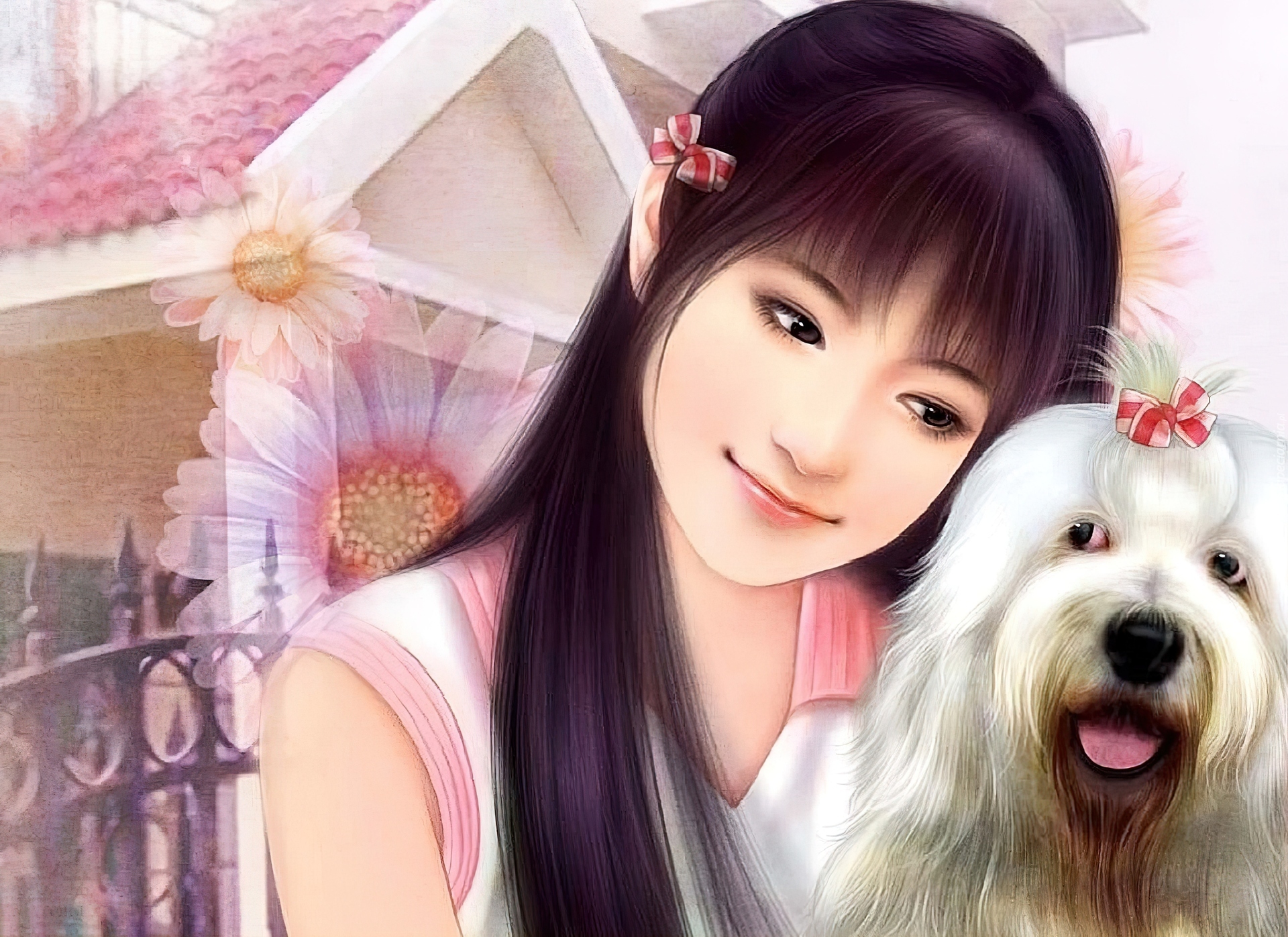 Edytor tapety: Młoda, Kobieta, Pies