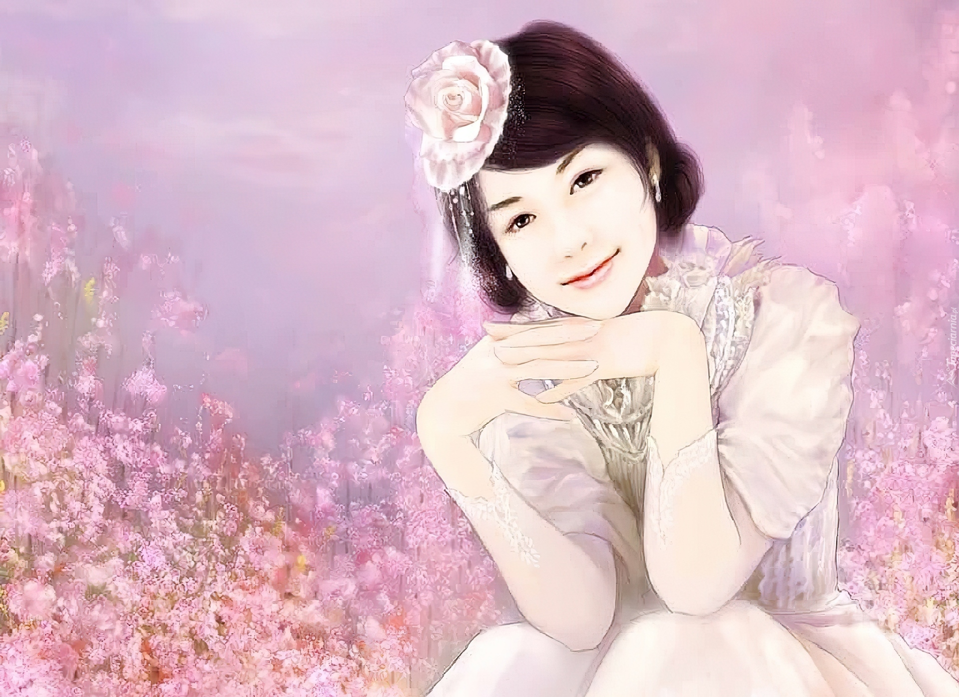 Edytor tapety: Młoda, Kobieta, Japonka, Różowe, Kwiaty