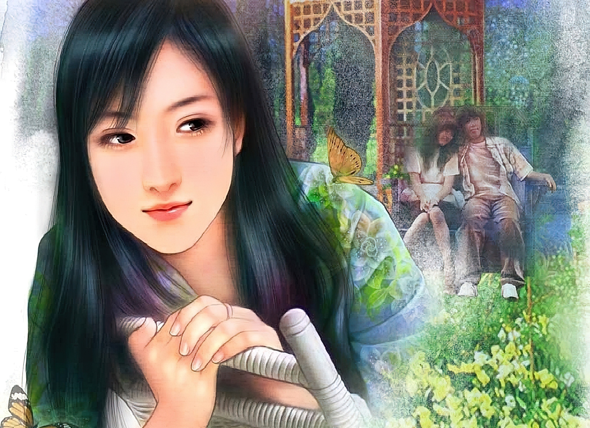 Edytor tapety: Zamyślona, Kobieta, Ogród
