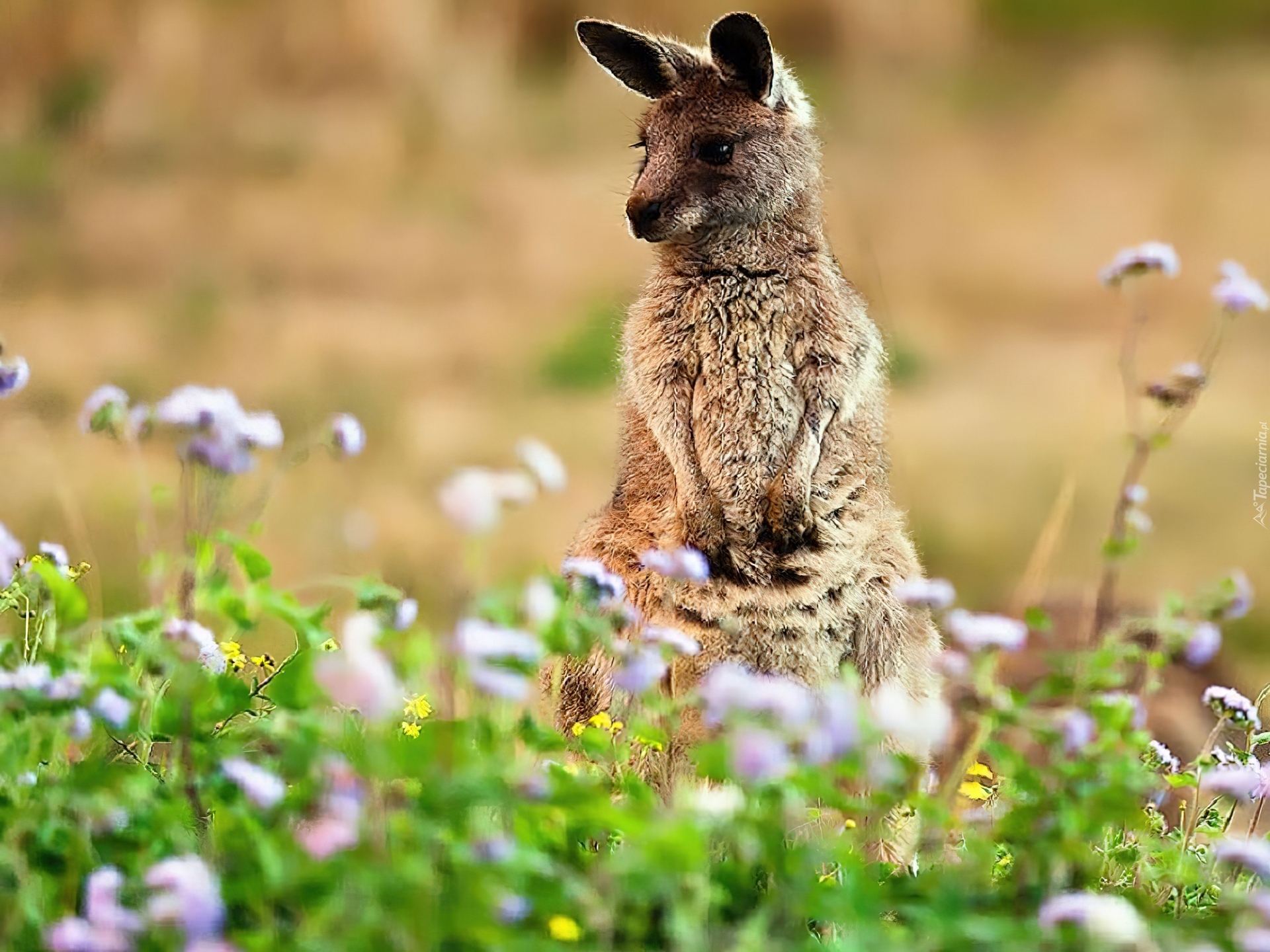 Edytor tapety: Kangur, Trawa, Kwiatki