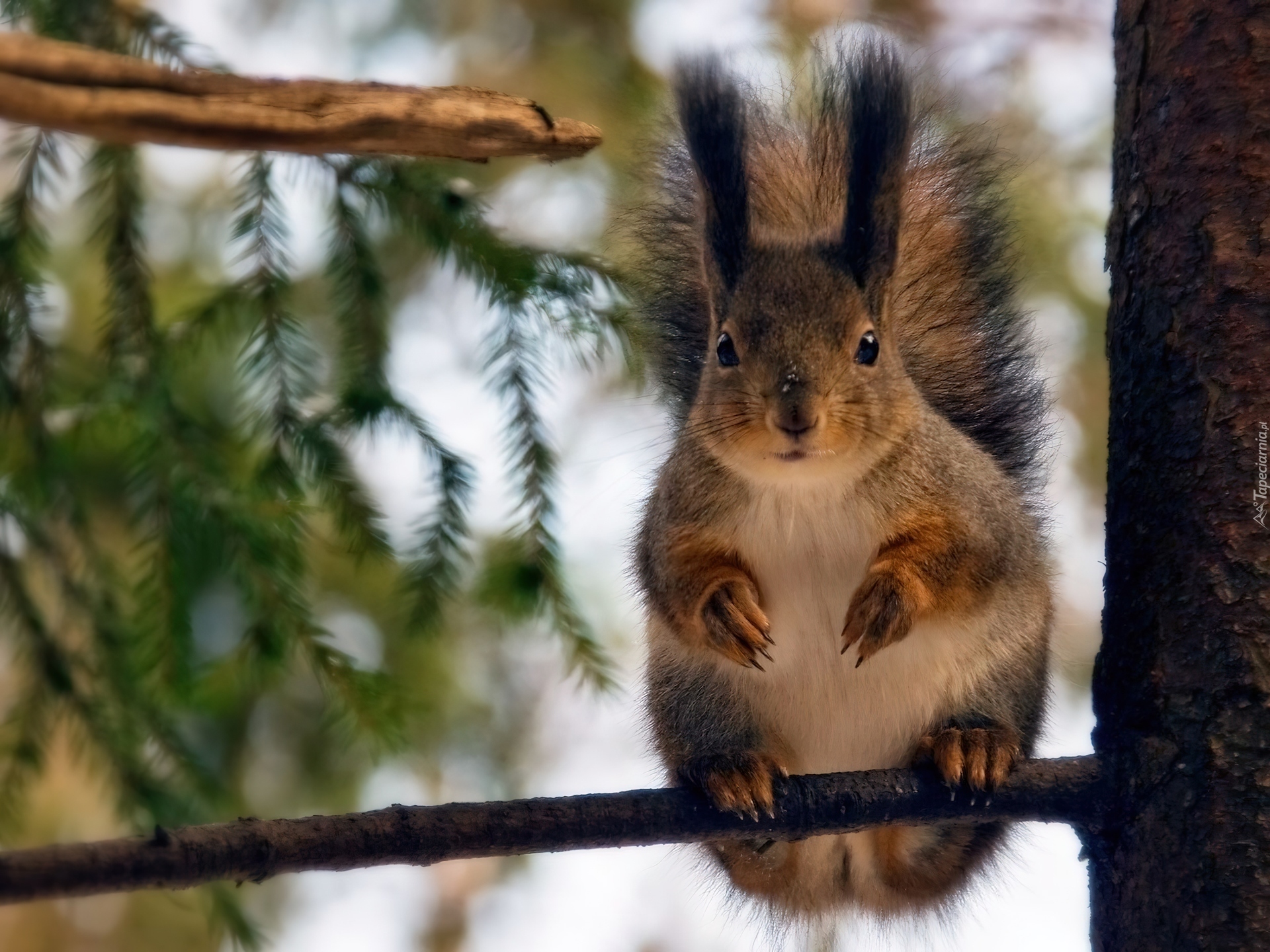 Edytor tapety: Wiewiórka, Drzewo, Gałąź