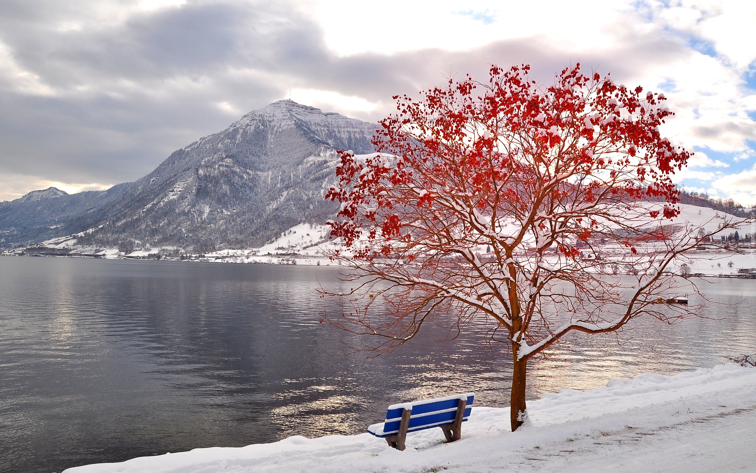 Edytor tapety: Drzewo, Ławka, Śnieg