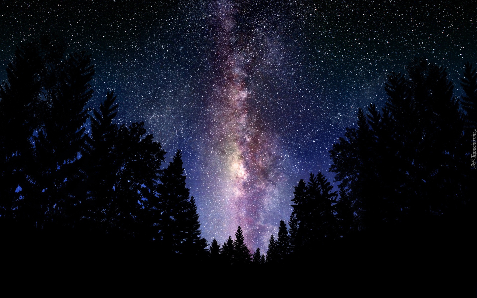 Edytor tapety: Las, Gwieździste, Niebo