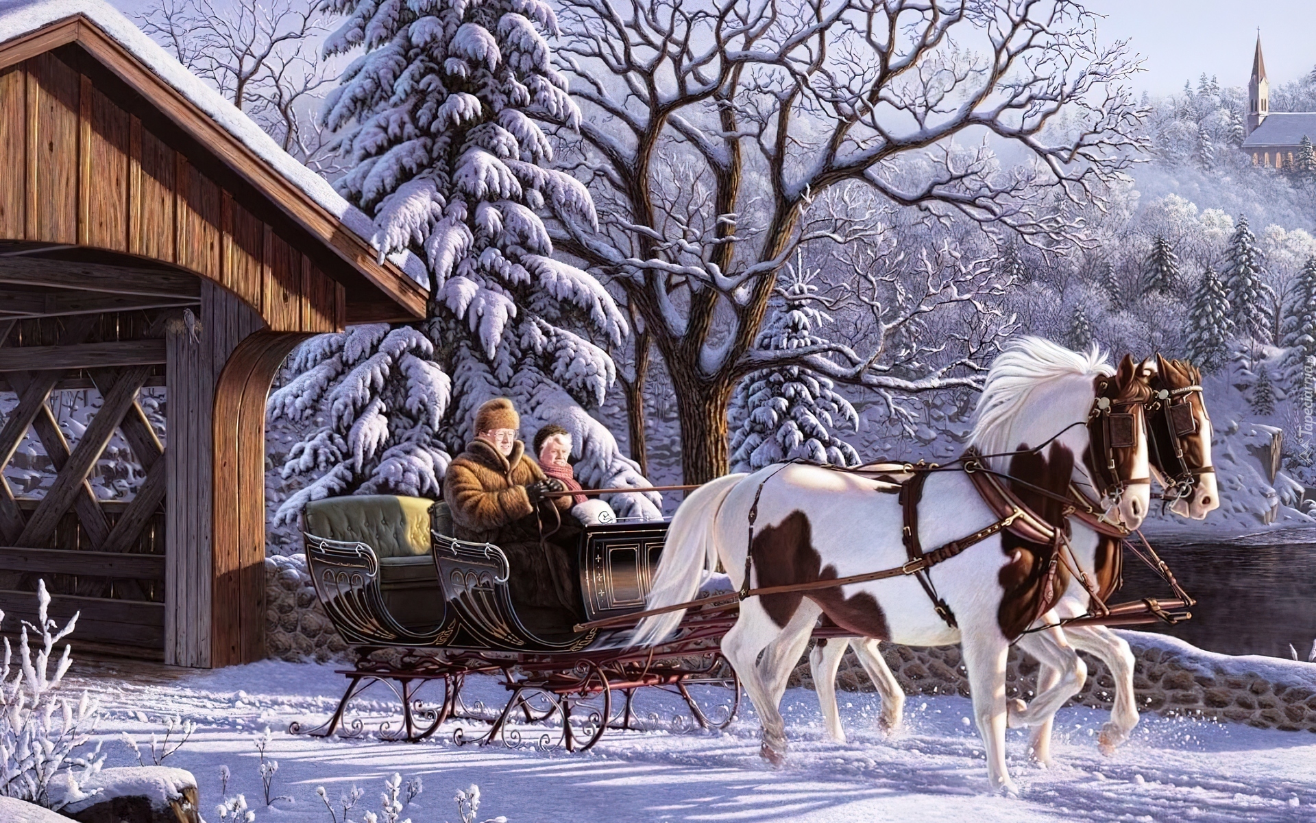 Edytor tapety: Zima, Konie, Sanie