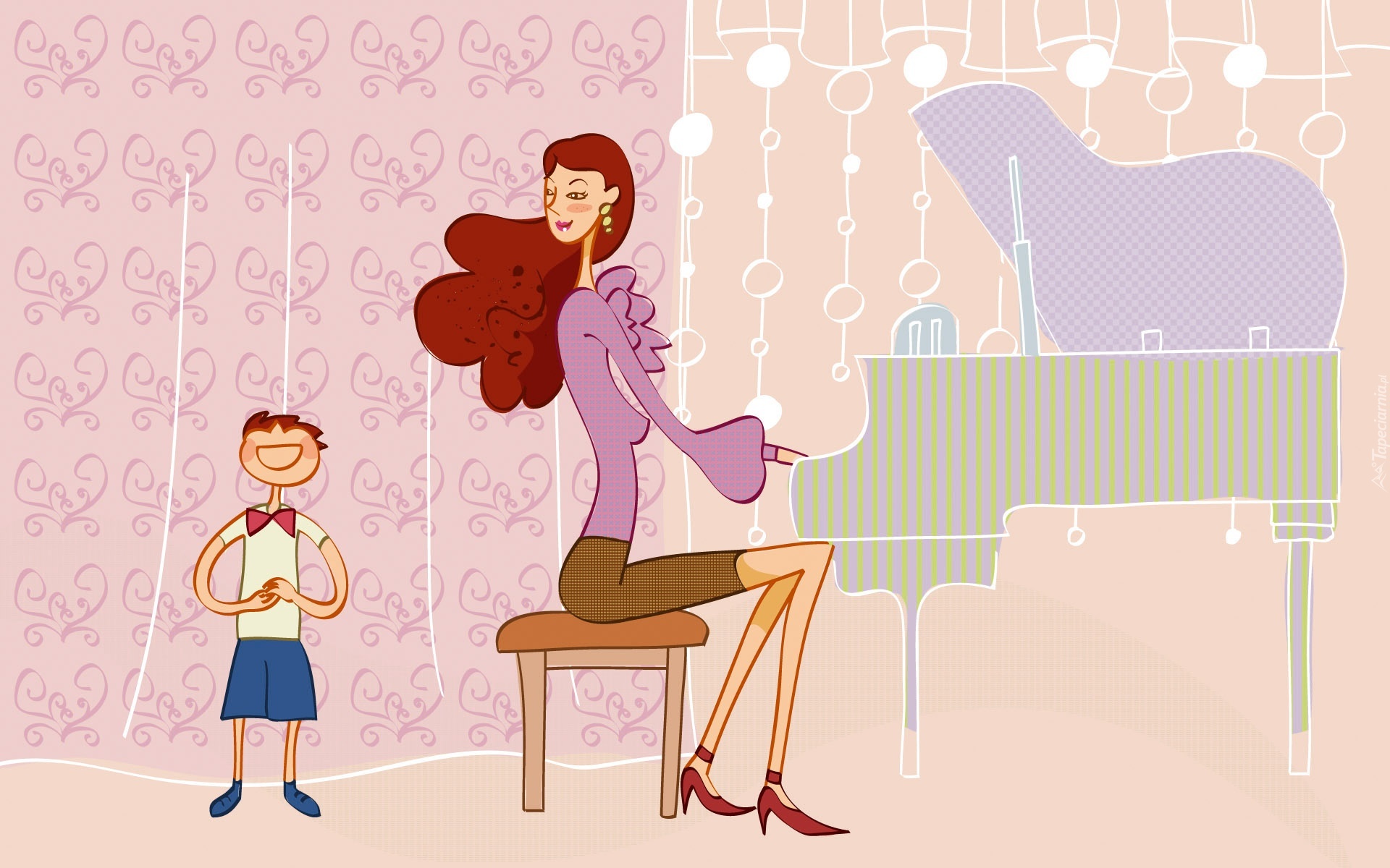 Edytor tapety: Kobieta, Dziecko, Fortepian
