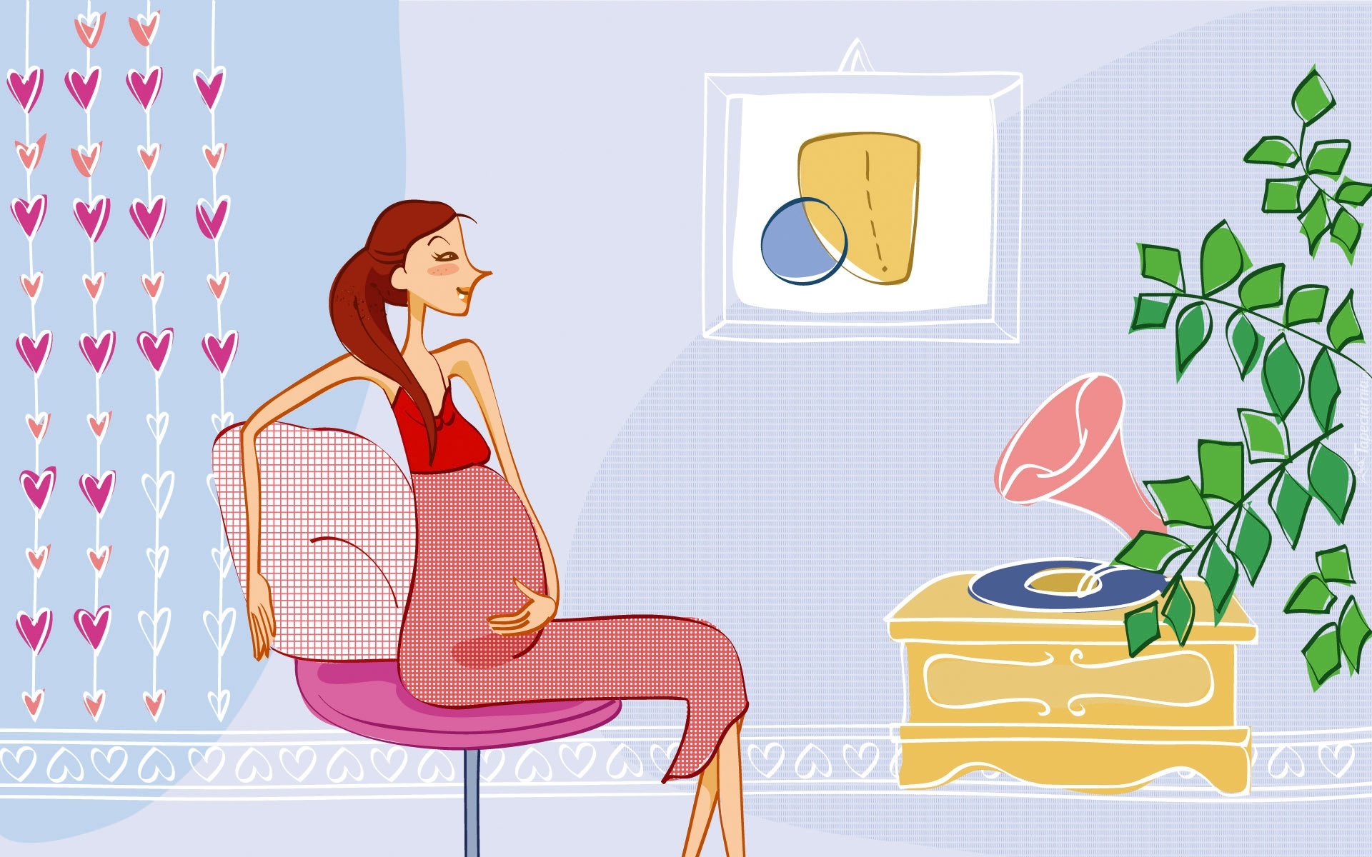 Edytor tapety: Kobieta, Ciężarna, Słuchanie, Muzyki