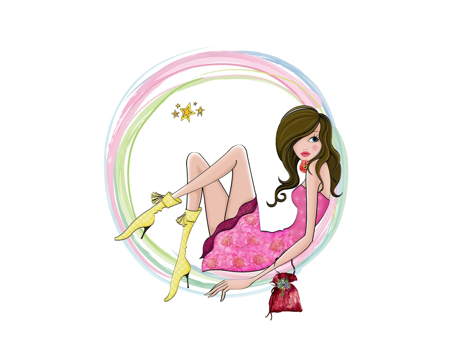 Edytor tapety: Tęczowe, Koła, Kobieta, Oczekiwanie