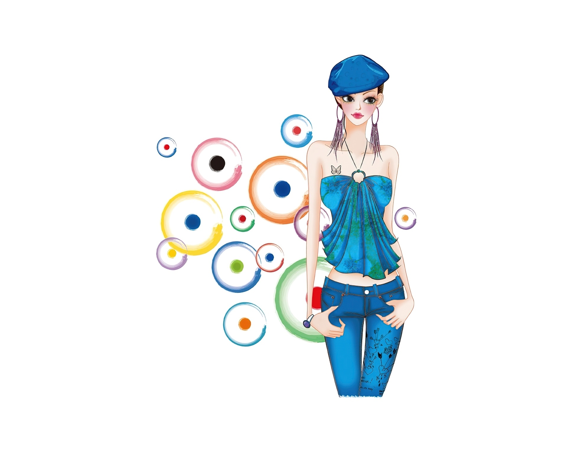 Edytor tapety: Modna, Kobieta, Niebieski, Strój