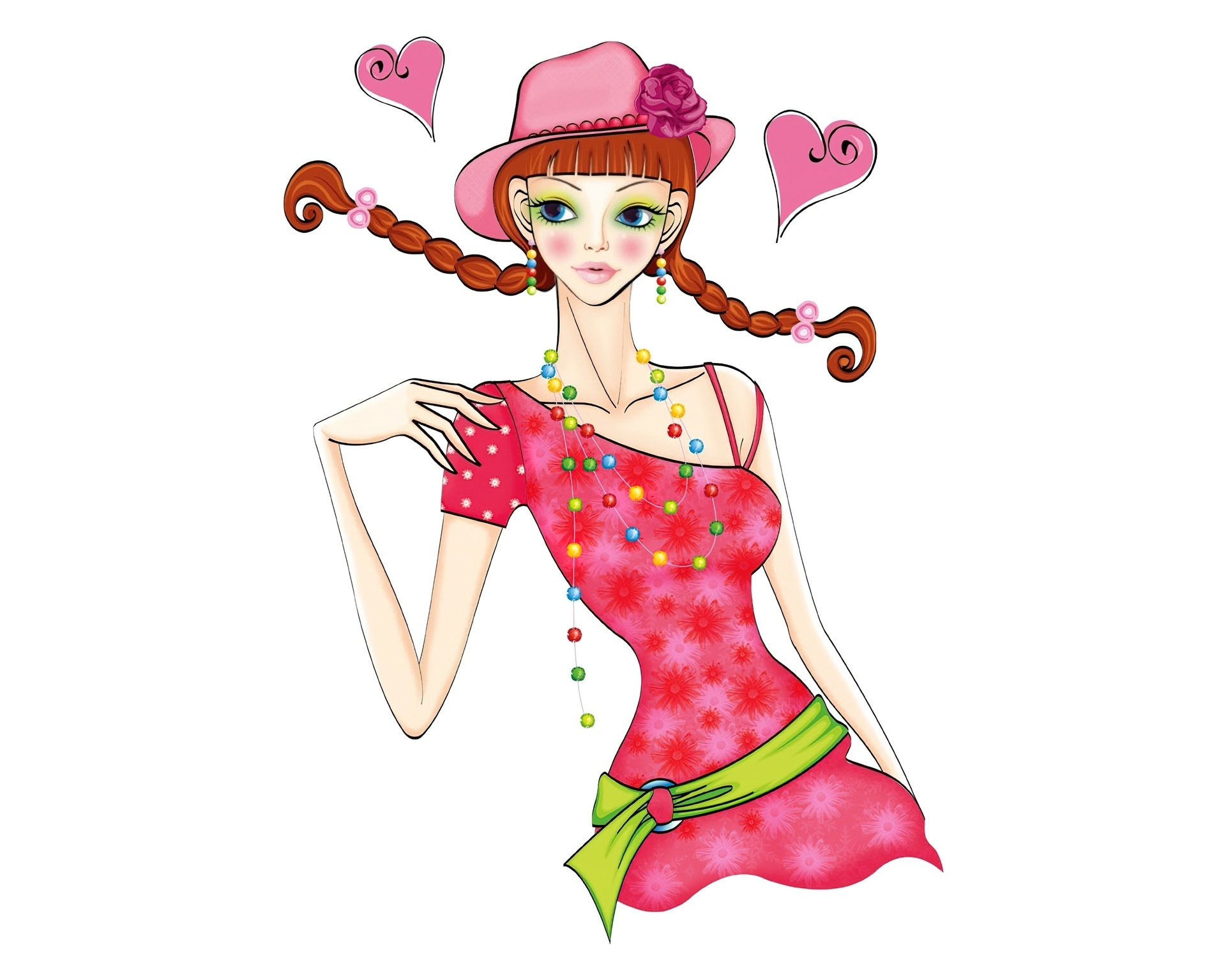 Edytor tapety: Młoda, Kobieta, Warkoczyki, Kapelusz