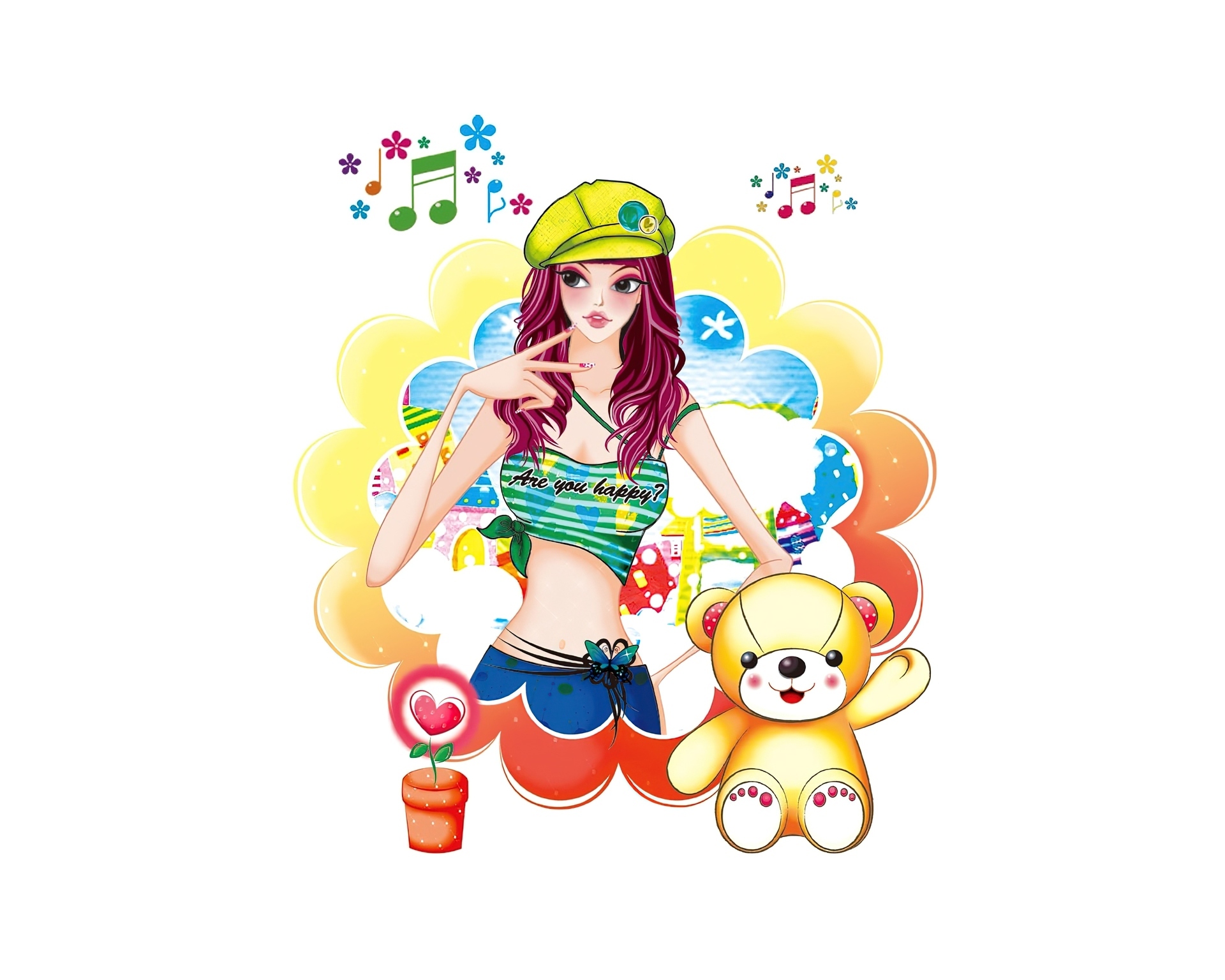 Edytor tapety: Szczęśliwa, Kobieta, Misiu