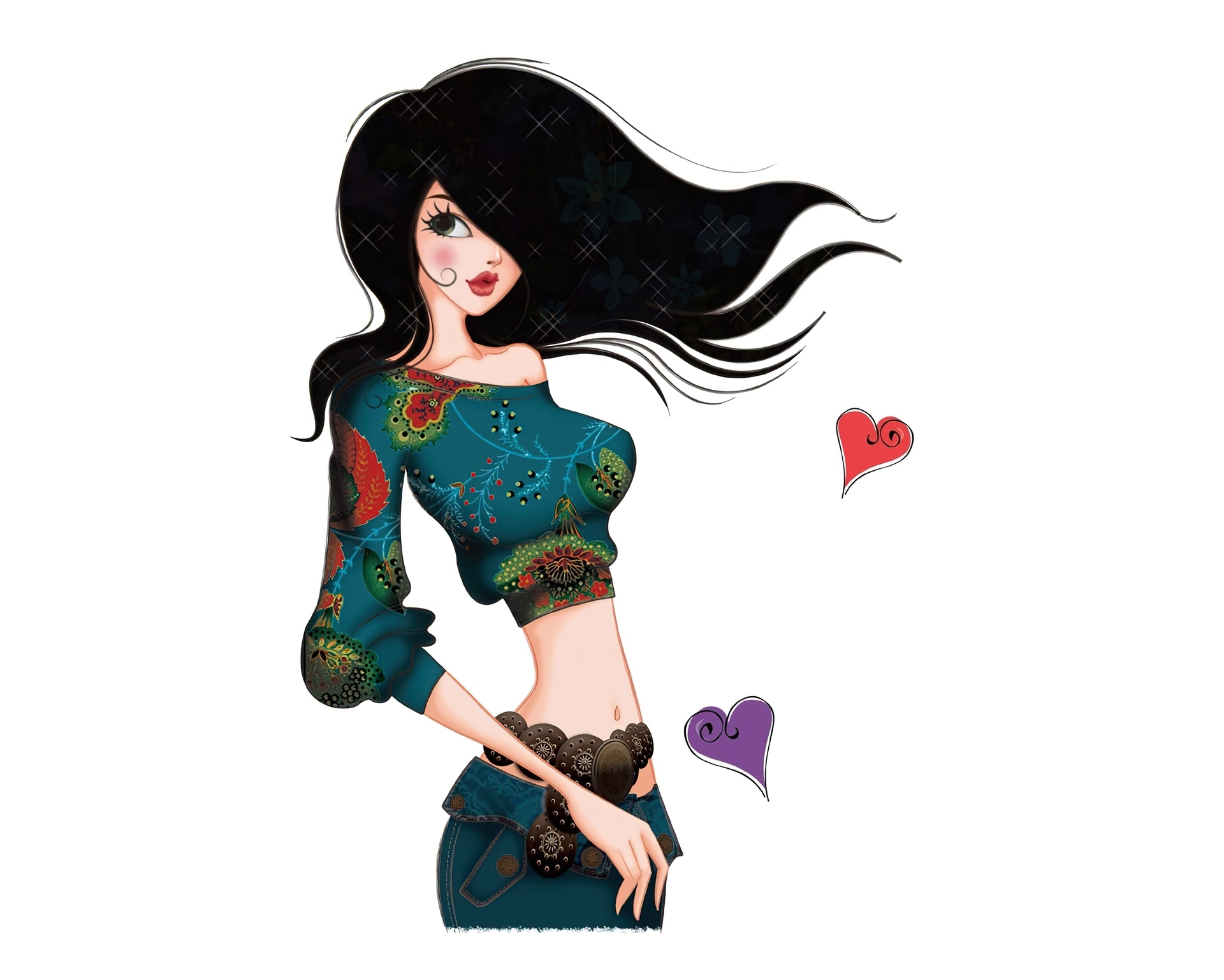 Edytor tapety: Czarnowłosa, Kobieta, Serca