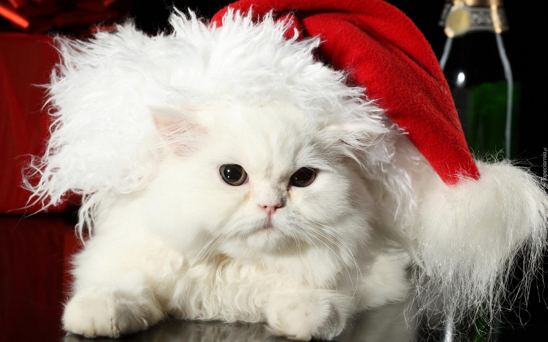 Edytor tapety: Biały, Kot, Świąteczna, Czapka