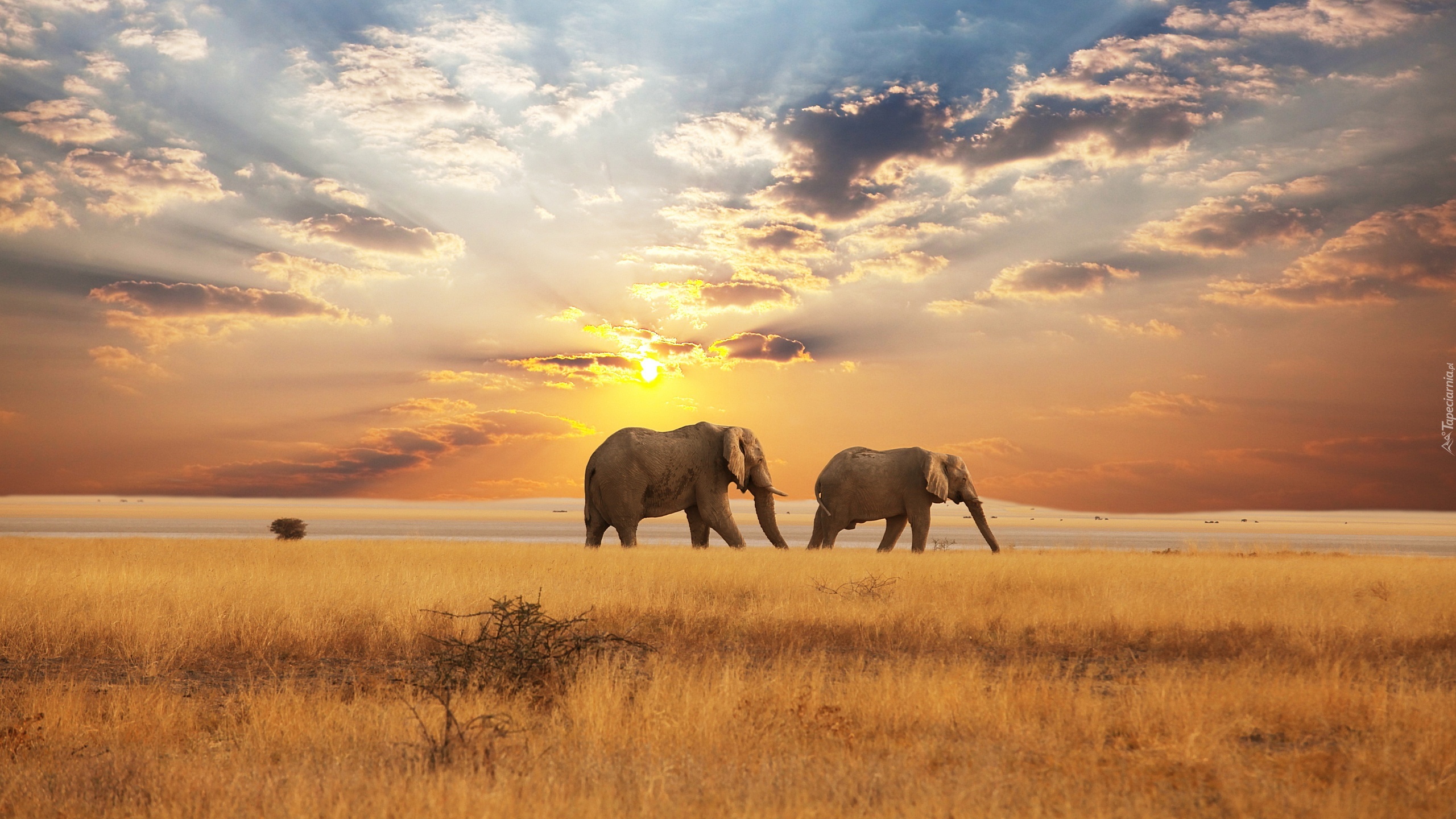 Edytor tapety: Afryka, Słonie, Zachód, Słońca